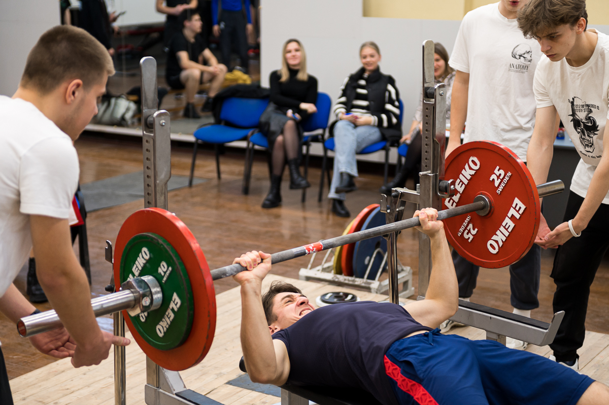 В зале тяжелой атлетике 14 декабря прошло первенство по жиму штанги лежа, девушки состязались в трех весовых категориях, а юноши в четырех.