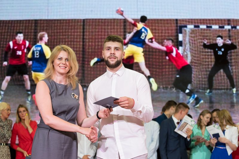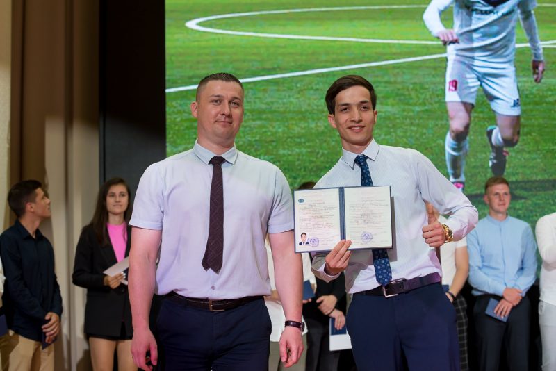 8 выпускников получили дипломы о высшем образовании с отличием – Дарья Кулевская, Дмитрий Рубан – тренерская работа по волейболу, Яна Ильючик – тренерская работа по шахматам, Елена Байрашевская – тренерская работа по теннису, Анастасия Зайцева – тренерская работа по фигурному катанию на коньках, Валерия Белая, Виктория Шаранкова – тренерская работа по конькобежному спорту, Вероника Девятовская – тренерская работа по конному спорту.