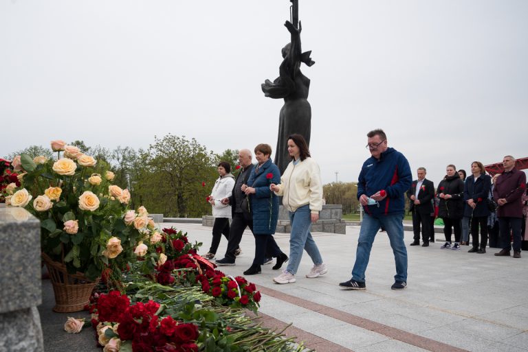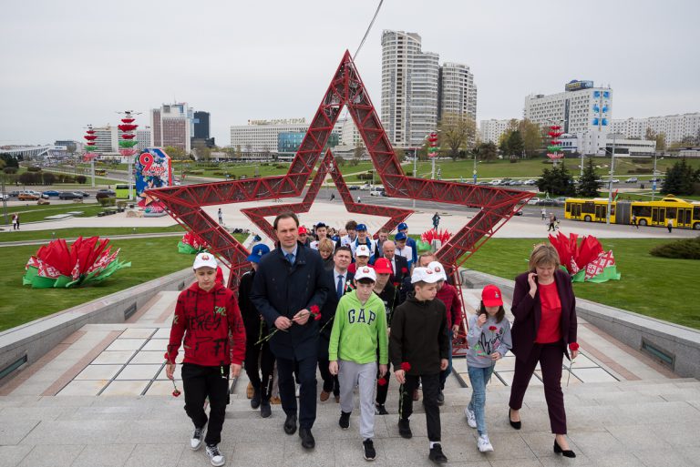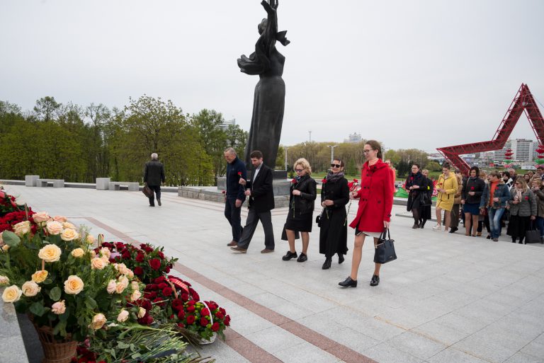 6 мая руководство, работники БГУФК, представители Министерства спорта и туризма приняли участие в возложении цветов к стеле «Минск — город-герой».