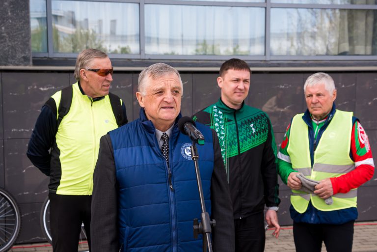 Заведующий кафедрой велосипедного, конькобежного и конного спорта Михаил Илларионович Дворяков обозначил маршрут велопробега и подчеркнул о необходимости соблюдения техники безопасности, а также призвал молодых людей не забывать историю и активно заниматься здоровым образом жизни.