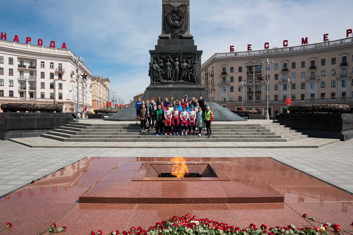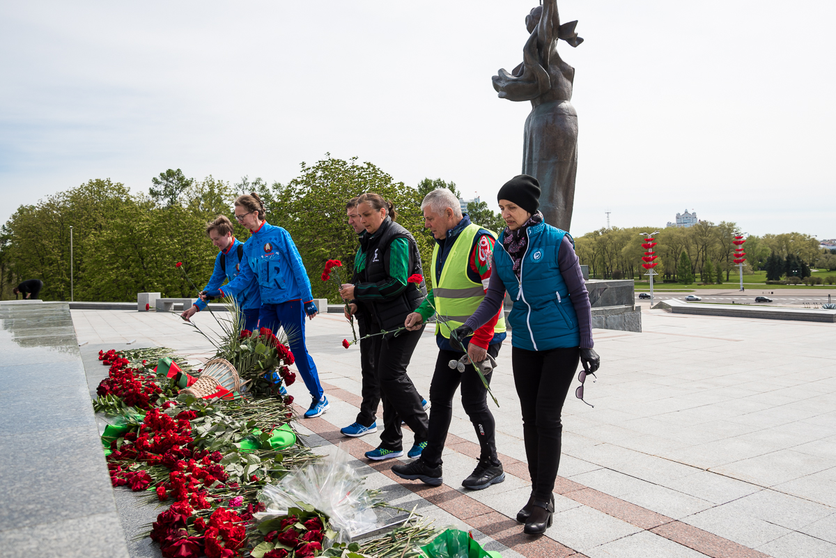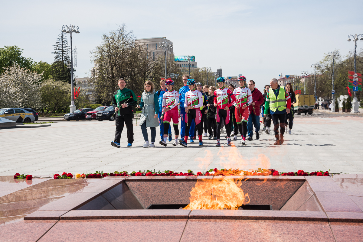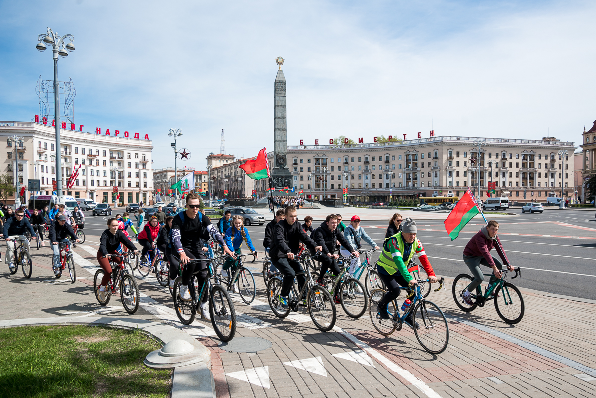 Первый проректор дал торжественный старт велопробегу и велосипедисты отправились по маршруту: стела «Минск город-герой» — памятник «Марату Казею» — площадь Победы.