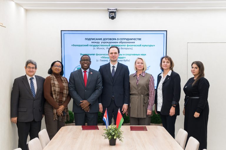 В период с 3 по 5 декабря Белорусский государственный университет физической культуры с официальным визитом посетила делегация Университета спортивных наук «Мануэль Фахардо» (Республика Куба). Кубинскую делегацию возглавили ректор университета доктор Мерсед Лэн Сильвано и директор по развитию международных связей Сармиенто Уррутиа Марвериз. На встрече также присутствовал Чрезвычайный и Полномочный Посол Республики Куба в Республике Беларусь Сантьяго Перес Бенитес.