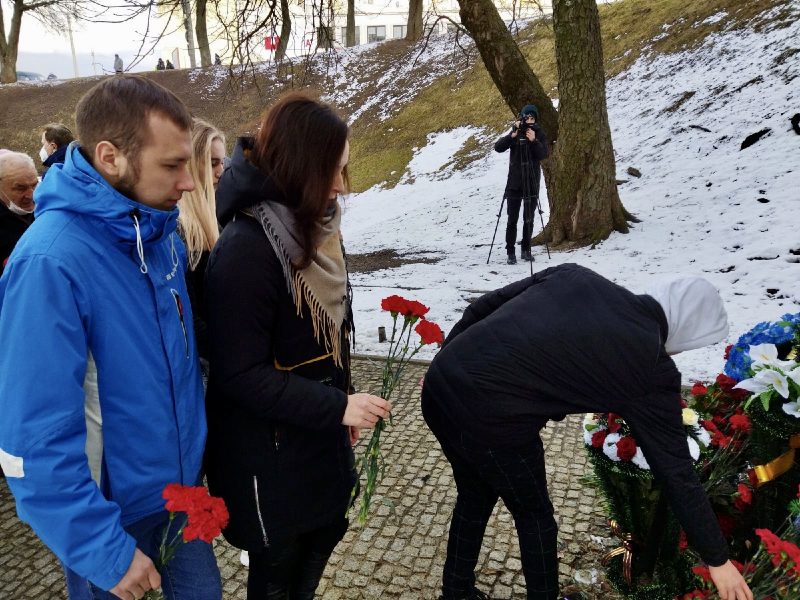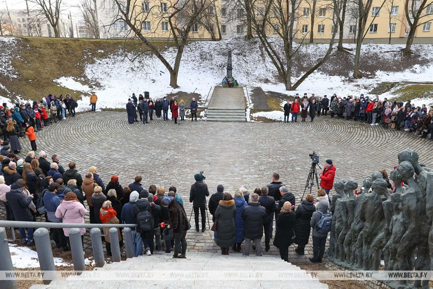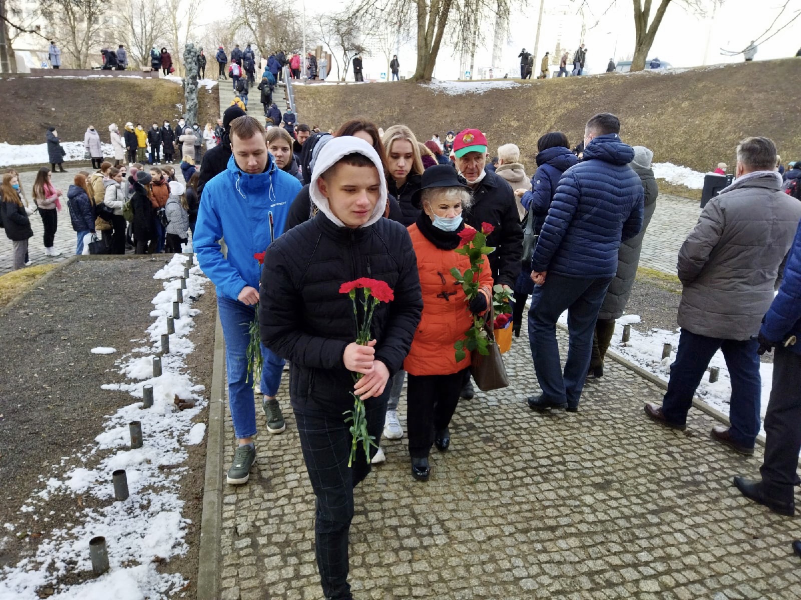 Заместитель начальника отдела по воспитательной работе с молодежью Лариса Игоревна Макей, председатель профсоюзного комитета студентов Павел Эдуардович Корсак, представители руководства района, общественных организаций и трудовых коллективов, депутаты парламента возложили цветы к мемориалу и почтили минутой молчания память более 5 тыс. узников Минского гетто, зверски уничтоженных фашистами и их пособниками в годы Великой Отечественной войны.
