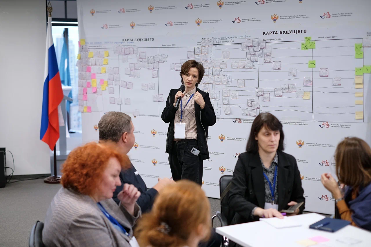 Заключительный этап форсайт-сессии состоялся в деловом центре «Москва-Сити» на базе Министерства Российской Федерации по развитию Дальнего Востока и Арктики. Команды обобщили результат работы предыдущих дней, сформировав «Карту будущего» развития спортивной отрасли и системы образования, поделились опытом нововведений в своих университетах и провели нетворкинг.