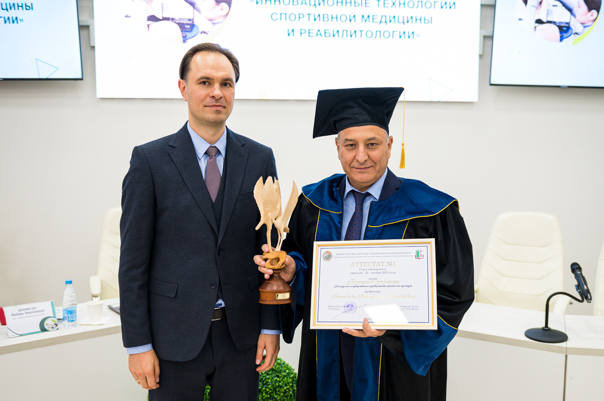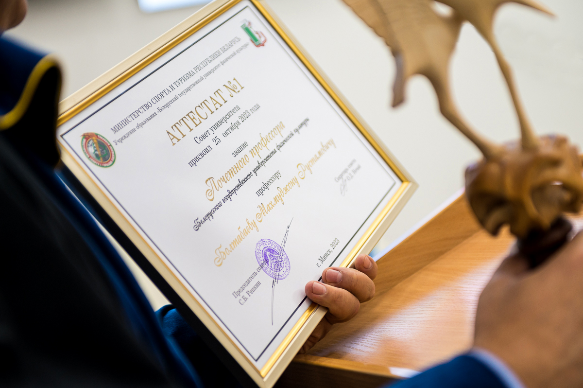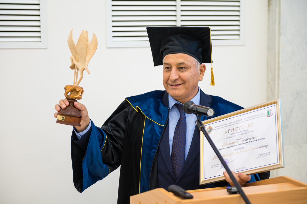 Присвоить звание «Почетный профессор БГУФК» и выдать аттестат почетного профессора № 1 ректору Узбекского государственного университета физической культуры и спорта профессору Болтабаеву Махмуджону Рустамовичу.