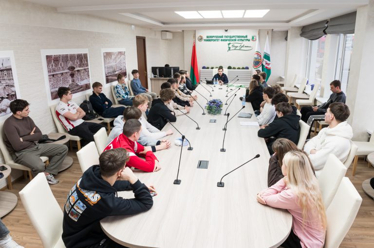 Первым приглашенным гостем проекта стал выпускник кафедры менеджмента спорта Белорусского государственного университета физической культуры Дмитрий Сергеевич Пупкевич, который встретился с будущими менеджерами в спорте.