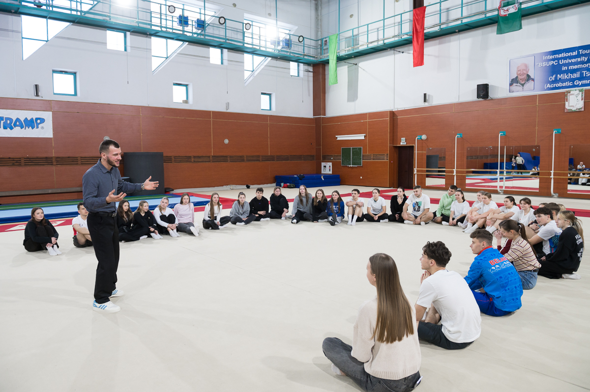 После теории началась магия практики! Ржевская Татьяна Александровна, директор клуба «Сильфида», перенесла зрителей в утонченный мир эстетики на мастер-классе «Развитие эстетической гимнастики как вида спорта в Республике Беларусь». А затем гости с головой окунулись в креатив на параллельных занятиях: старший преподаватель кафедры физической культуры учреждения образования «Белорусский государственный университет культуры и искусств» Аксютич Елена Вацлавовна учила ломать стереотипы в «Координации вне шаблона», а преподаватель нашего университета Кушель Никита Константинович показывал, как рождается «Ритм партнерства: от внимания – к слаженным действиям».