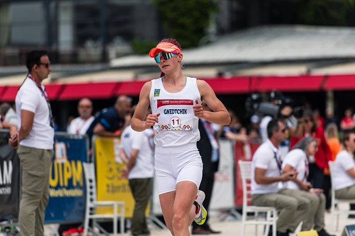 Мария занимала 19 место после первого вида – фехтования, была 17-й после плавания, с максимальным результатом – 300 очков выступила в верховой езде и прекрасно справилась с последним испытанием – комбинированным видом. На старт заключительного вида пятиборья она вышла на 11-й позиции, отставая на 15 секунд от Г.Венцкаускайте и на 33 секунды от лидера соревнований француженки М.Отейзы. Продемонстрировав отличную подготовленность в беге и стрельбе М.Гнедчик опередила девять спортсменок и на финише была второй.
