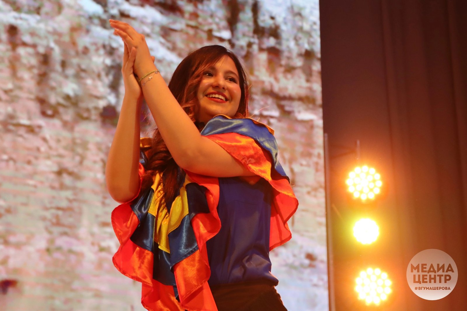 В финале конкурса одним из испытаний было представление национального блюда. Кухня 8 стран мира ожидаемо была представлена во всём своём многообразии: белорусские тертюхи и таркованки, русские щи и блины с икрой, креветки гунбао из Китая, рис джолов из Зимбабве, бешбармак из Кыргызстана, парипу из Шри-Ланки, помпеле из Камеруна… Самой гостеприимной хозяйкой жюри признало Валерию Хосе Баньес Боливар. Венесуэльские эмпанады и арепы принесли нашей студентке почетный титул «МИСС ВКУСNATION».