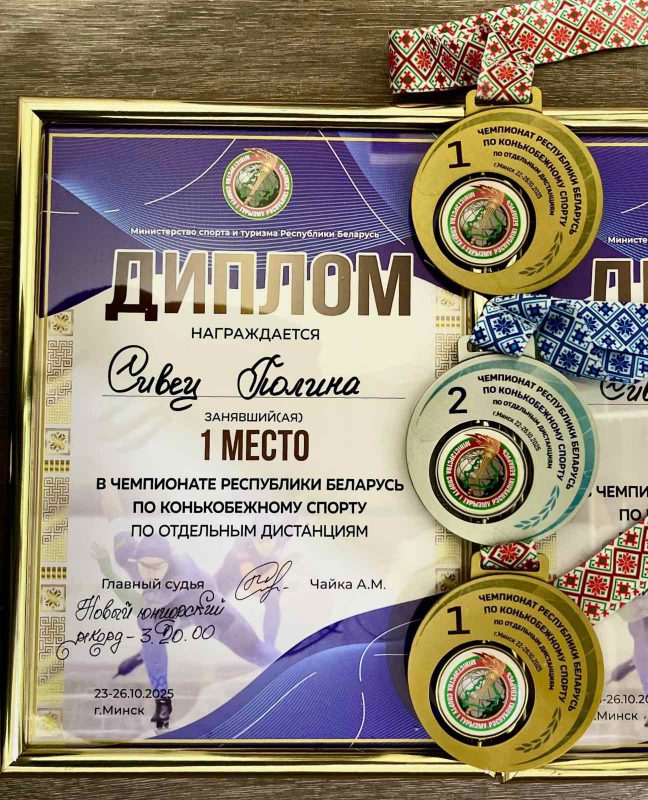 Поздравляем студентку 1 курса кафедры физической реабилитации Полину Сивец с блестящим выступлением на Чемпионате Республики Беларусь по конькобежному спорту!