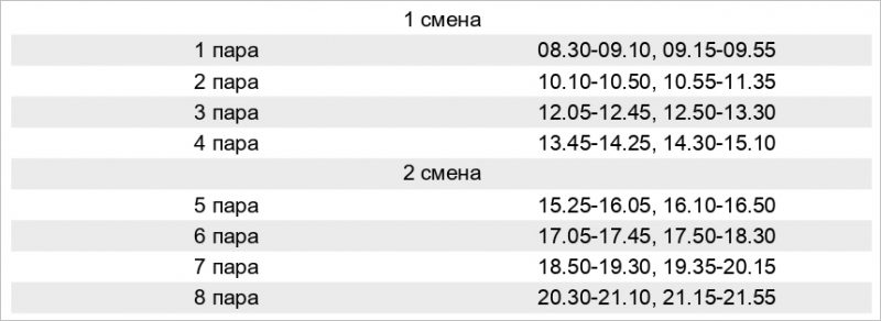 РАСПИСАНИЕ ЗАНЯТИЙ