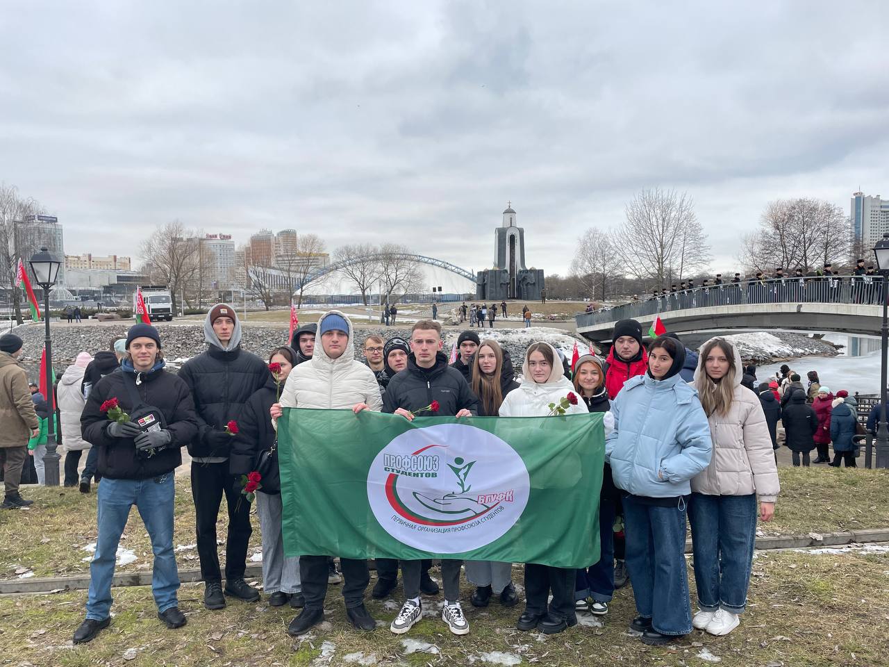 Среди участников мероприятия и студенты БГУФК во главе с председателем профсоюзного комитета студентов Корсаком Павлом Эдуардовичем.