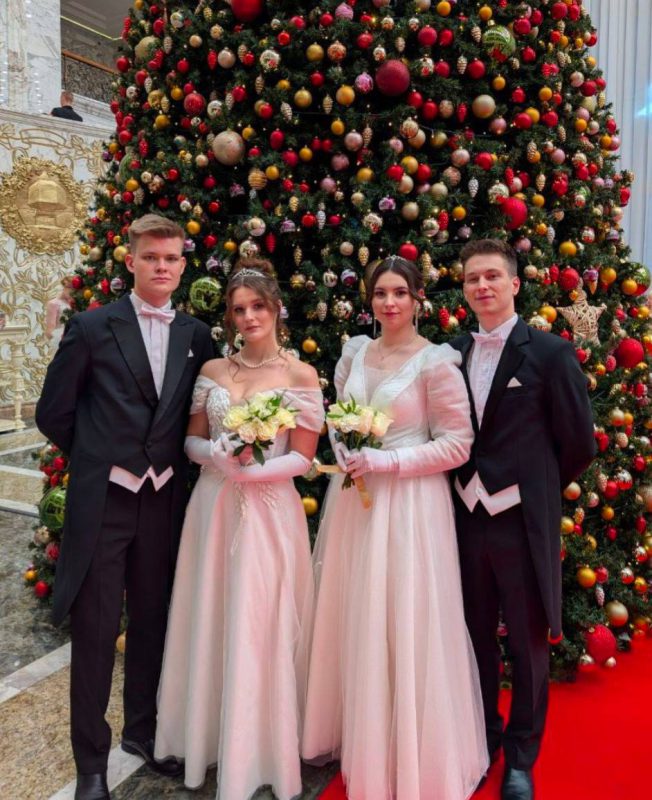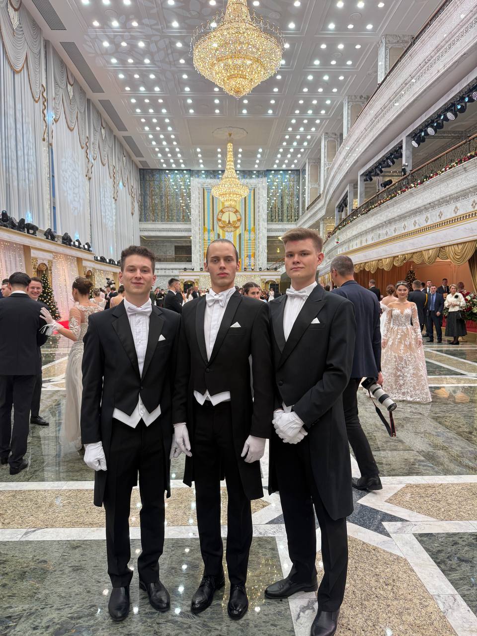 Студенты БГУФК Милана Грицук (группа 1406), Никита Фирсов (группа 4302), Михаил Хмель (группа 2401), Елизавета Дайлиденок (группа 0403), Арина Старовойтова (группа1404) и Ярослав Архиреев (группа 0401) приняли участие в традиционном новогоднем балу для молодежи во Дворце Независимости в присутствии Президента Беларуси Александра Григорьевича Лукашенко.