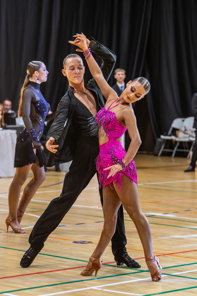 Но самым кульминационным моментом вечерних отделений турнира стали соревнования на «Кубок Белорусского государственного университета физической культуры» в возрастной категории «Взрослые + Молодежь» по программам Латина и Стандарт. Победителями в латиноамериканской программе стали представители Российской Федерации Вениамин Тимофеев и Мария Лахей, второе место – наши студенты Вадим Иваш (2301 гр.) и Алина Бахматович, бронзовые призеры – Дмитрий Елькин (2301 гр.) и Валерия Люторевич. Также в финальный раунд прошли Илья Муравичкий (2203 гр.) и Екатерина Сапьяник (6 место).