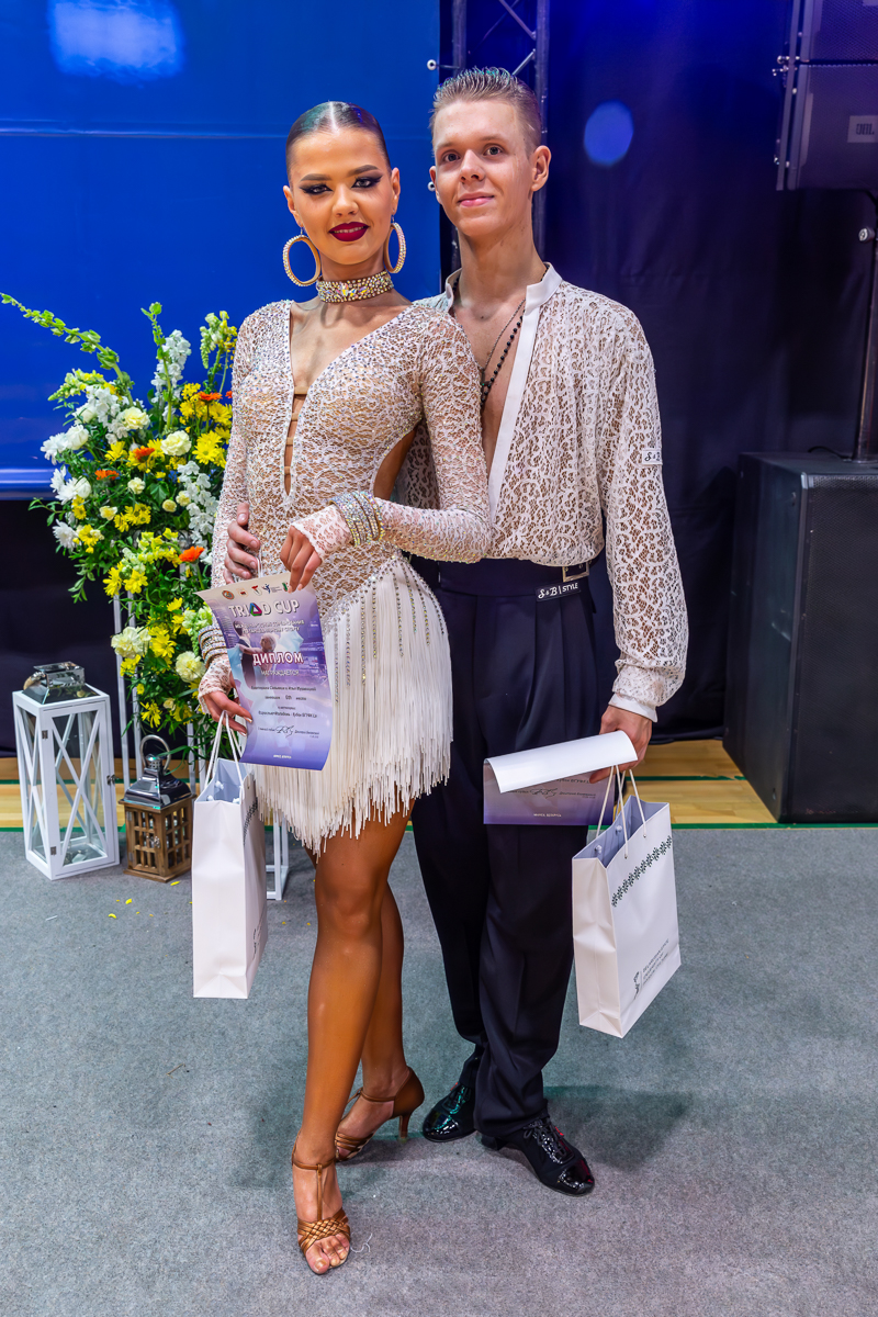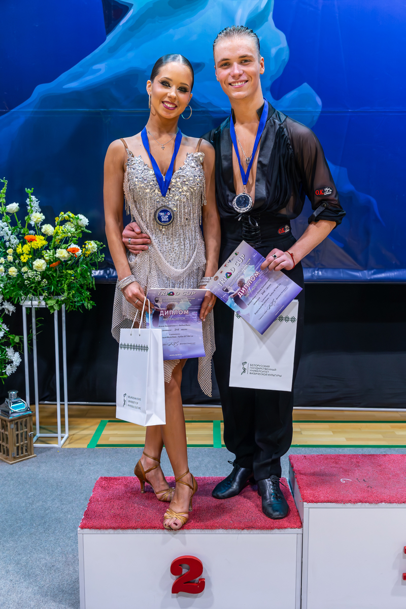 Но самым кульминационным моментом вечерних отделений турнира стали соревнования на «Кубок Белорусского государственного университета физической культуры» в возрастной категории «Взрослые + Молодежь» по программам Латина и Стандарт. Победителями в латиноамериканской программе стали представители Российской Федерации Вениамин Тимофеев и Мария Лахей, второе место – наши студенты Вадим Иваш (2301 гр.) и Алина Бахматович, бронзовые призеры – Дмитрий Елькин (2301 гр.) и Валерия Люторевич. Также в финальный раунд прошли Илья Муравичкий (2203 гр.) и Екатерина Сапьяник (6 место).