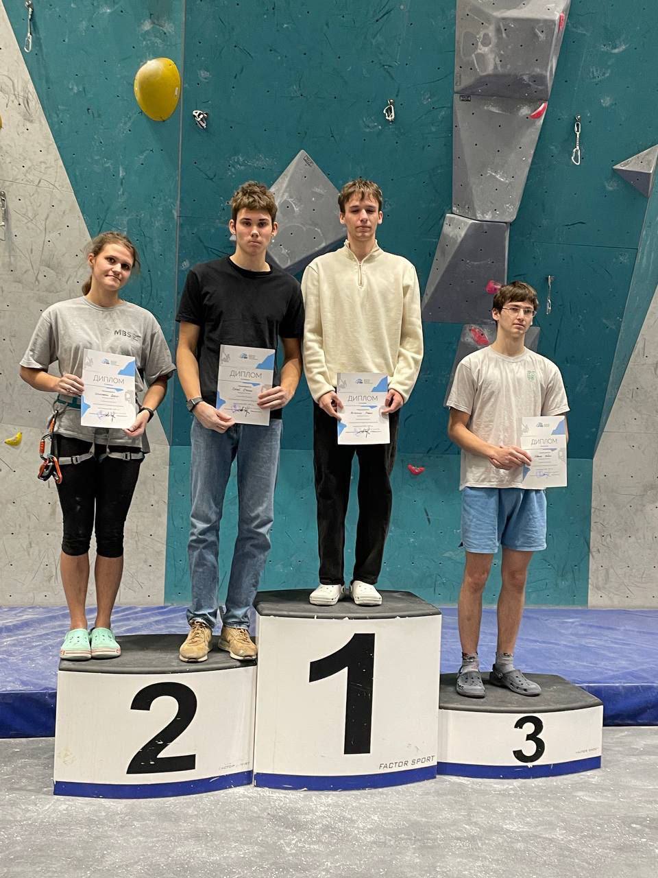В Первенстве в лазании на трудность чемпионом стал Астапчик Павел (группа 2301), серебро завоевал Ступней Степан (группа 2110), бронзовую медаль выиграл Руденко Вадим (группа 2208). Чемпионкой в Первенстве стала Грищенкова Екатерина (группа 2208).