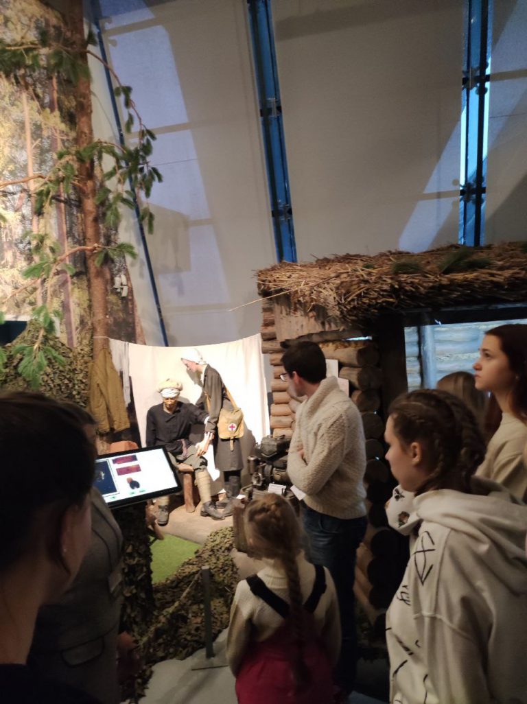 Дух истории охватил студентов с порога музея, состоящего из десяти залов, каждый из которых рассказывает посетителю о разных периодах Великой Отечественной войны. Студенты познакомились с экспозициями музея, узнали много интересных фактов о великом подвиге наших дедов и прадедов, реальные истории жизни и борьбы белорусского народа в тяжёлые военные годы.
