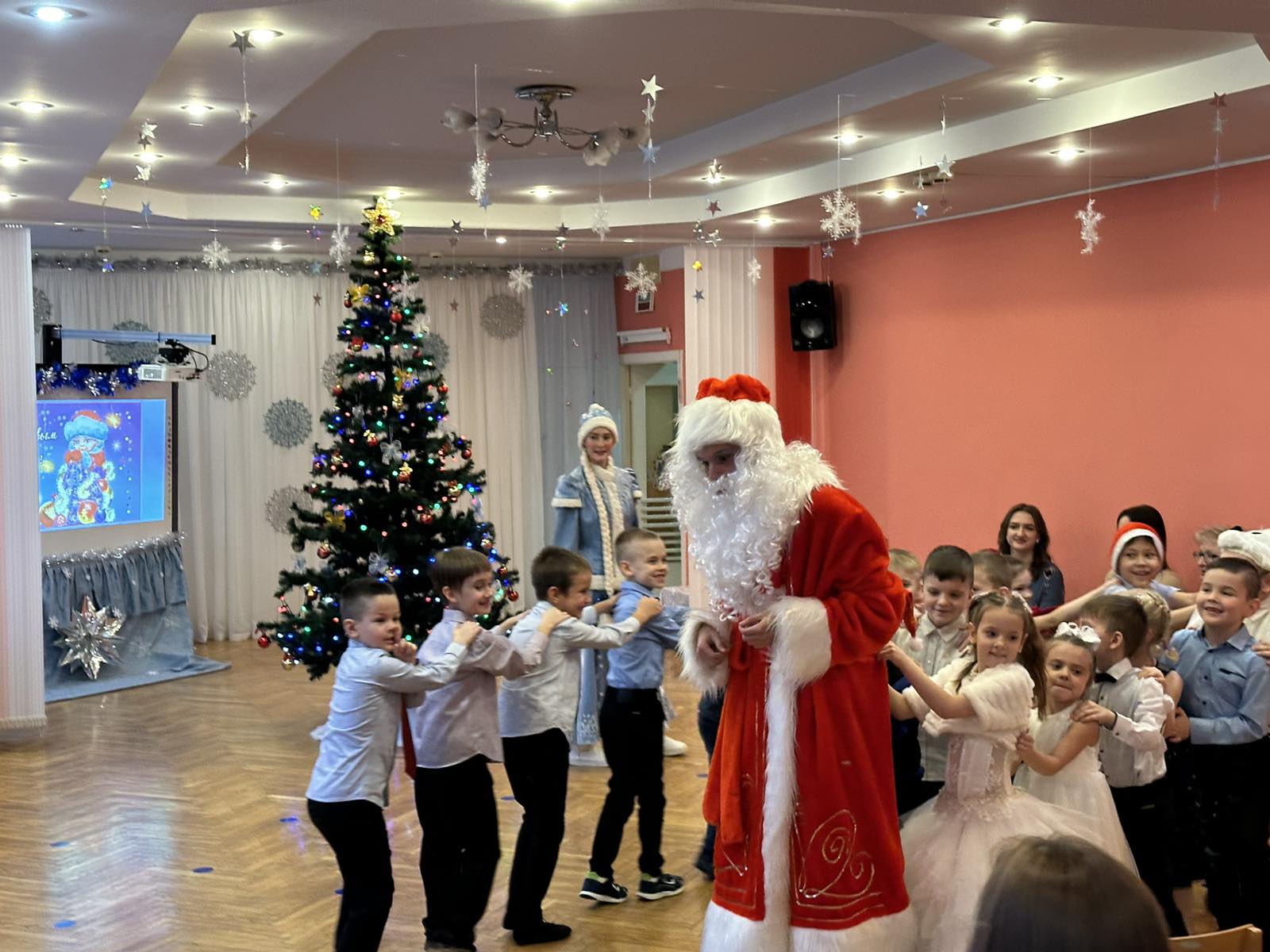 Студенты направления специальности «Физическая культура (дошкольников), кафедры лечебной физической культуры и физической культуры дошкольников принимают участие в проведении новогодних утренников в ГУО «Детский сад №369 г. Минска » с детьми разных возрастных групп, исполняя роли сказочных героев, в том числе Деда Мороза и Снегурочки.