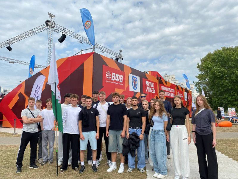 Яркое спортивное событие стало темой для выездного занятия студентов университета. 3 и 4 сентября студенты вместе с преподавателями и сотрудниками спортивного клуба посетили групповой этап международного турнира по пляжному волейболу «Кубок Победы», который стартовал на площадке у столичного Дворца спорта.