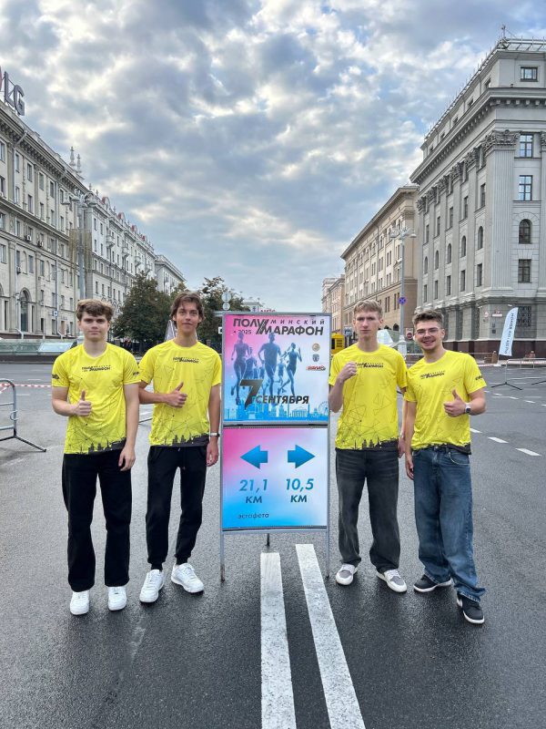 Также наши студенты и сотрудники университета на Минском полумарафоне-2025 выступали судьями и волонтерами. Они обеспечивали безопасность, раздавали воду участникам полумарафона, всячески поддерживали, справедливо судили и, конечно же, вручали заслуженные медали на финише.