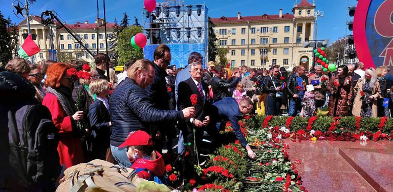 9 мая руководство, преподаватели, студенты и сотрудники университета приняли участие в шествии поколений и возложении цветов и венков к монументу Победы в рамках патриотической акции «Беларусь помнит».