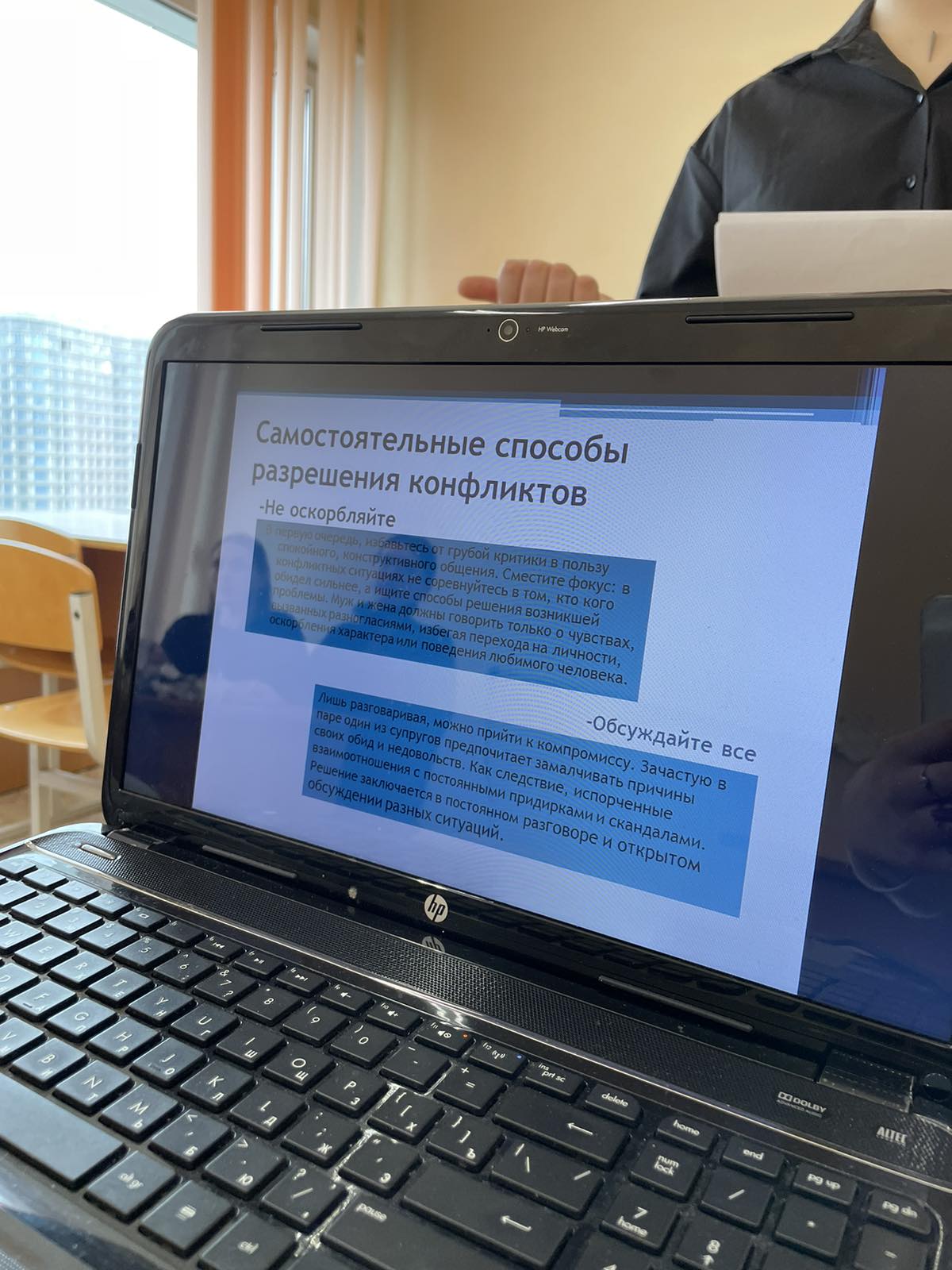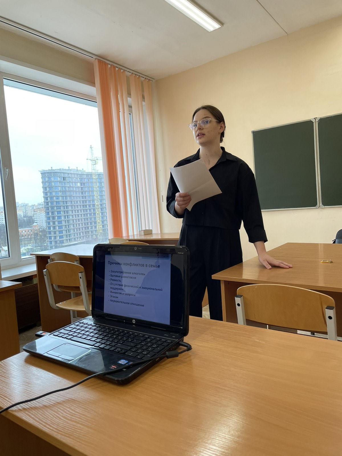 13 марта 2024 г. состоялся семинар на тему «Конфликты в семье и как их разрешить». Участники проекта рассказали об основных причинах конфликтов в семье и способах их разрешения. Также были обсуждены распространенные конфликты, которые возникают в семье, и слушатели самостоятельно предлагали методы разрешения данных конфликтов.