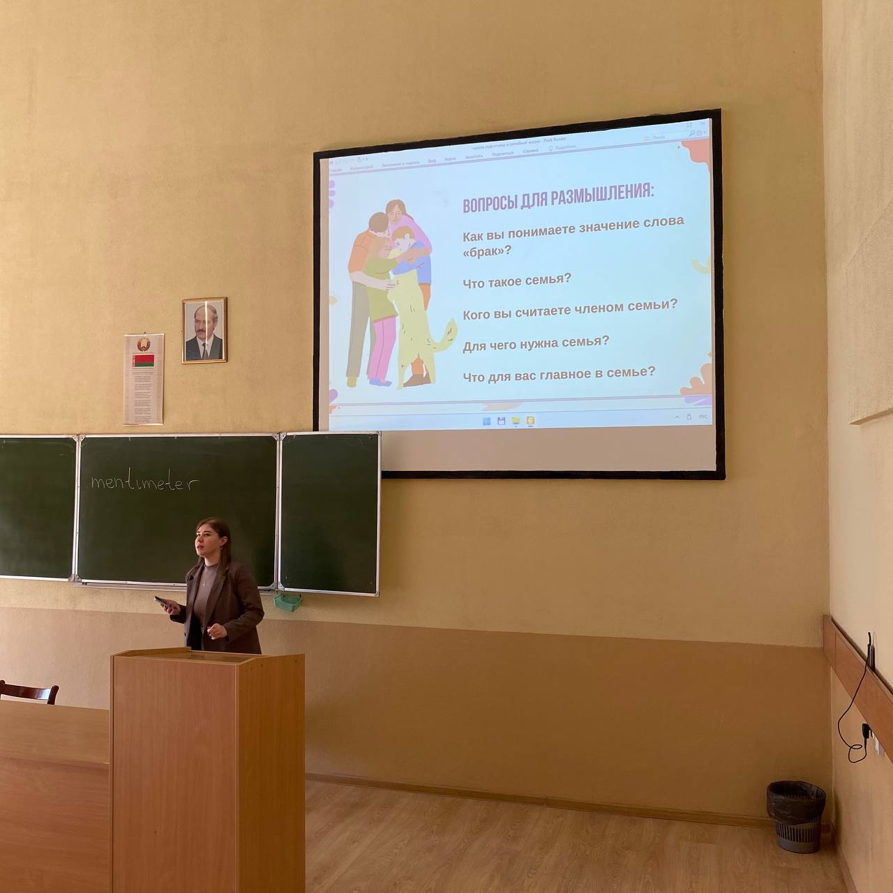 В рамках республиканского конкурса молодёжных социальных проектов «Молодёжь Беларуси за жизнь, нравственность и семейные ценности» в номинации «Молодежь за СЕМЕЙНЫЕ ЦЕННОСТИ ради жизни!» студенты 415 группы Института менеджмента спорта и туризма под руководством куратора группы Королёвой Марины Дмитриевны активно реализуют проект «ШКОЛА ПОДГОТОВКИ К СЕМЕЙНОЙ ЖИЗНИ».