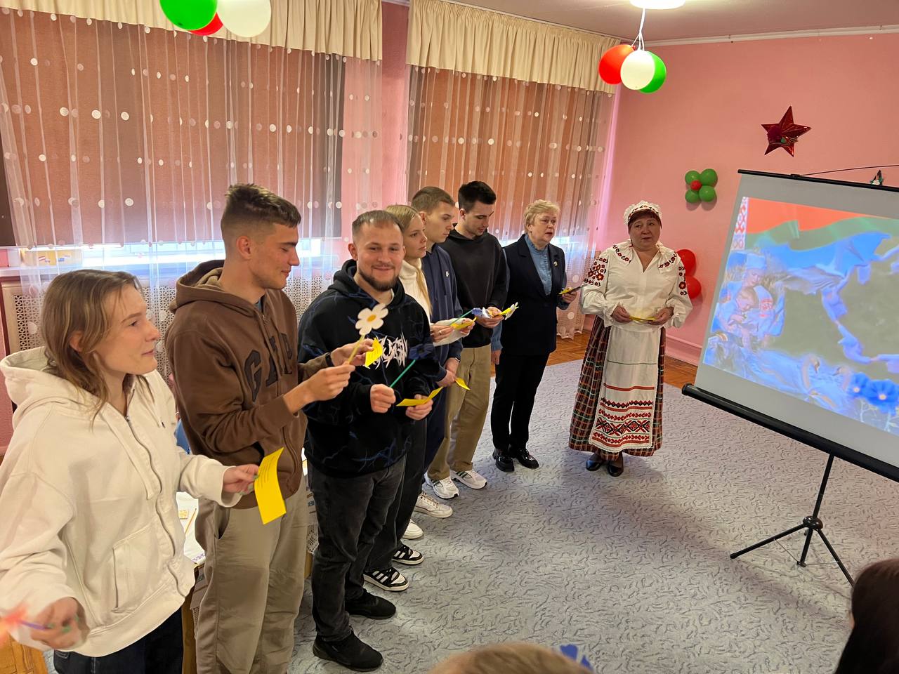 Студенты исполняли песни «Моя Беларусь», » Земляка», «День Победы» а также почтили память погибших в Великую Отечественную войну минутой молчания.