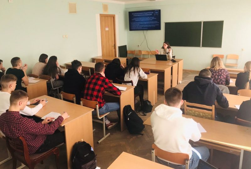 Ольга Ярохович училась на кафедре менеджмента спорта, окончила университет в 2019 году и стала специалистом БАСС. На встрече со студентами выступила с докладом на тему «Студенческий спорт: популярность, динамика, развитие». Будущие специалисты сферы смогли ознакомиться не только с положением студенческого спорта в Республике Беларусь, но и в других странах.