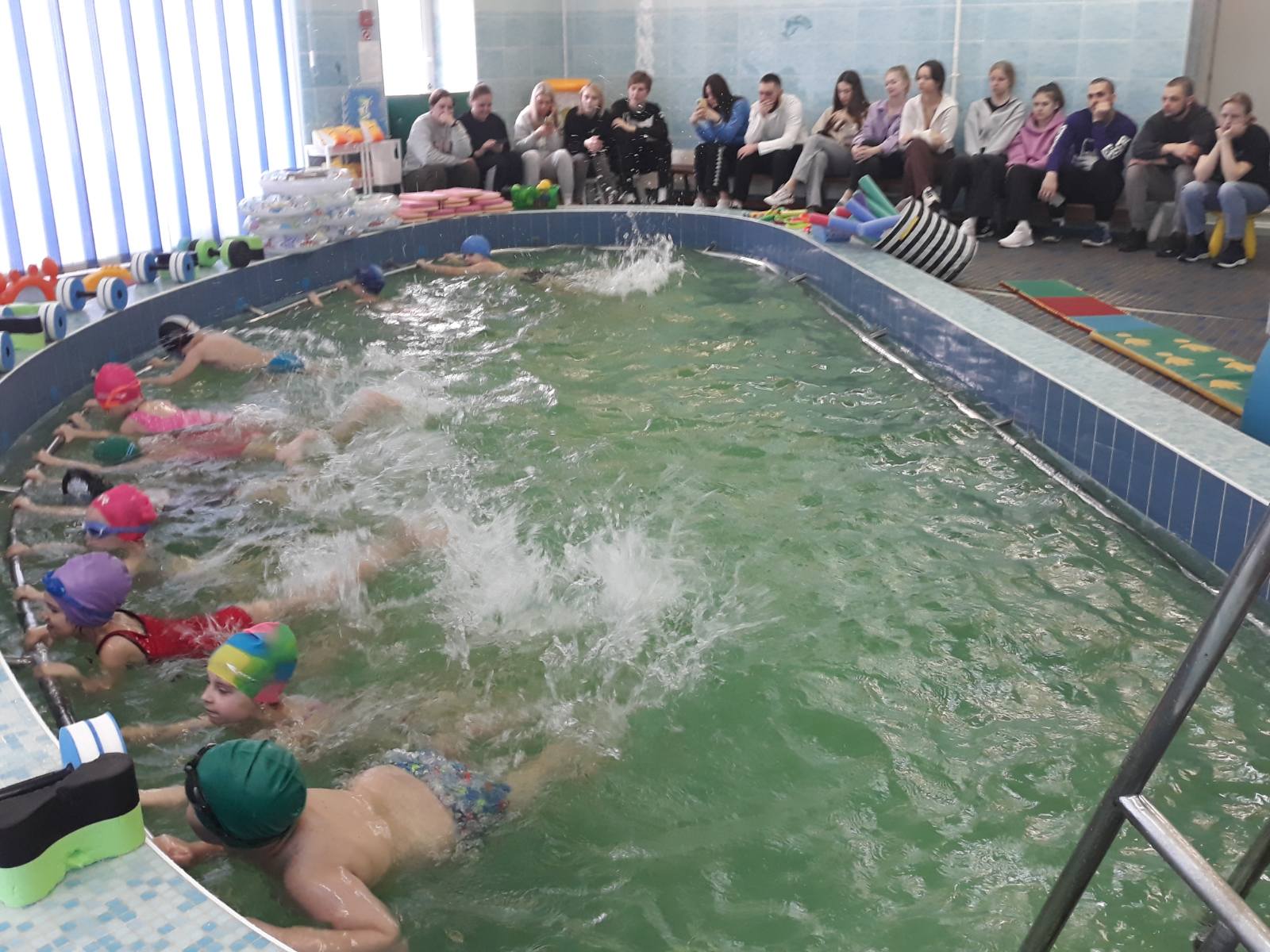 Студенты также присутствовали на занятии в бассейне, где они ознакомились с программой физкультурно-оздоровительной работы, предназначенной для детей дошкольного возраста. Совместно с воспитателями детского сада студенты 045 группы под руководством старшего преподавателя кафедры ЛФКиФКД З.М.Житько организовали игровую деятельность на прогулке с воспитанниками всех возрастных групп.