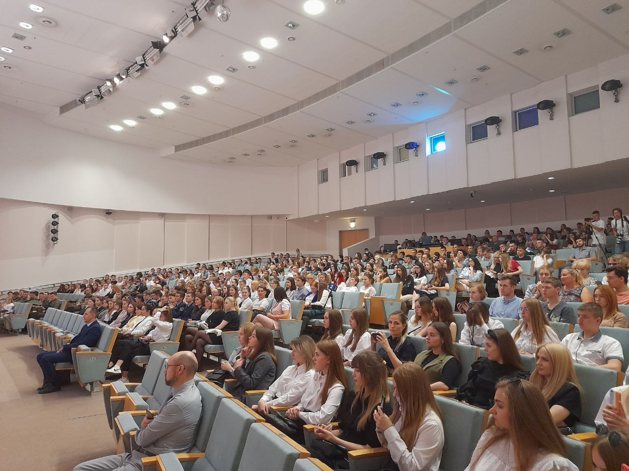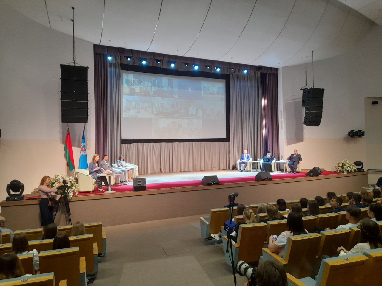 На встречу в «Алмаз знаний» в очном формате пришли более 400 выпускников учреждений высшего и профессионального образования, среди которых и студенты Белорусского государственного университета физической культуры. В формате онлайн-стрима присоединилась молодежь девяти предприятий нашего города.