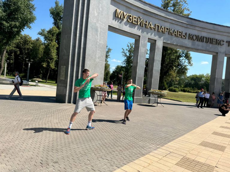 Студенты университета Саврицкий Никита и Мохначев Станислав перед стартом провели разминку для всех участников и дали вместе яркий старт забегу.