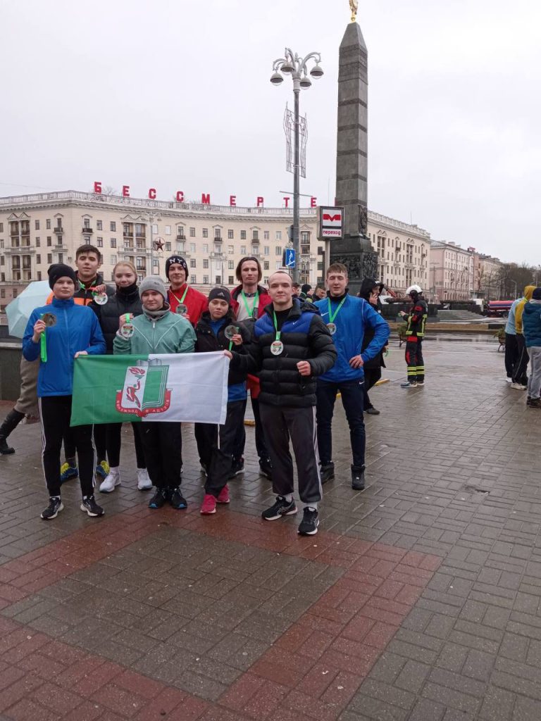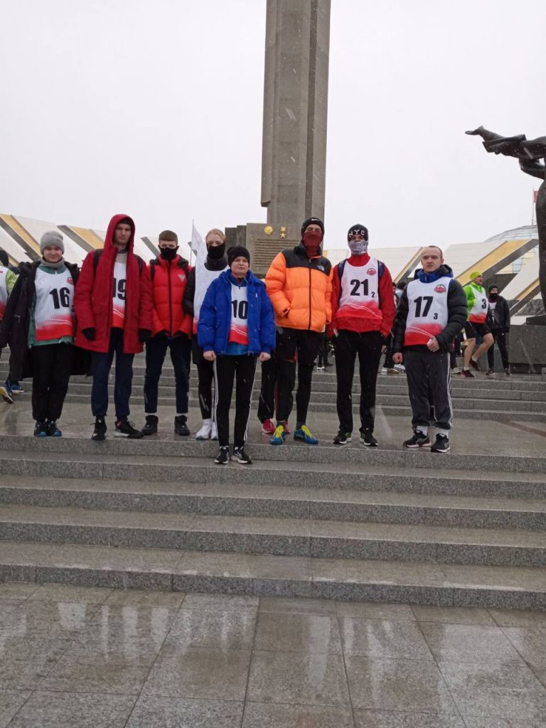 Под руководством старшего преподавателя кафедры легкой атлетики Елены Васильевны Цухло студенты университета: Мокша Мария, Сечная Ирина, Ду Чжэньлун, Жук Анастасия, Ковзусь Рената, Лоскутова Елизавета, Михно Валерия Вячеславовна, Юрий Романович, Мальцев Александр, Грушко Глеб, Юдичева Анастасия, Путырский Атрут, Ковалевский Николай, Пшигоцкий Артём преодолели спортивную дистанцию в 3,5 километра и финишировали у площади Победы.