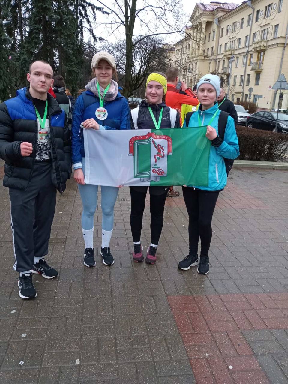 Под руководством старшего преподавателя кафедры легкой атлетики Елены Васильевны Цухло студенты университета: Мокша Мария, Сечная Ирина, Ду Чжэньлун, Жук Анастасия, Ковзусь Рената, Лоскутова Елизавета, Михно Валерия Вячеславовна, Юрий Романович, Мальцев Александр, Грушко Глеб, Юдичева Анастасия, Путырский Атрут, Ковалевский Николай, Пшигоцкий Артём преодолели спортивную дистанцию в 3,5 километра и финишировали у площади Победы.