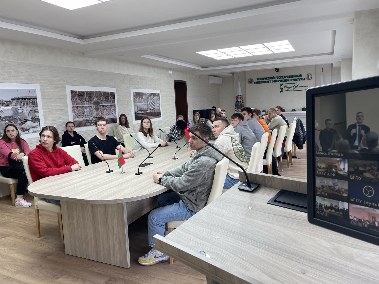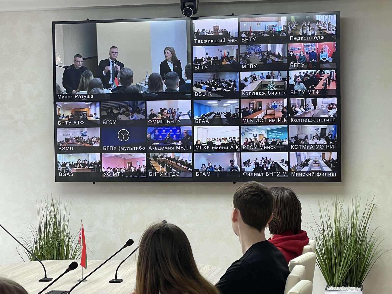 Участники: студенты и учащиеся учреждений образования столицы, работающая молодежь, представители молодежи Республики Армения, Республики Казахстан, Кыргызской Республики, Республики Таджикистан, Российской Федерации. На связи было более 60 учреждений образования. Среди участников и студенты БГУФК.