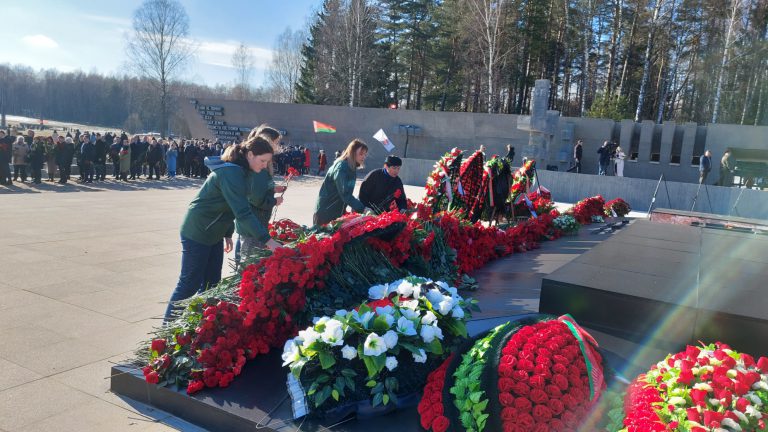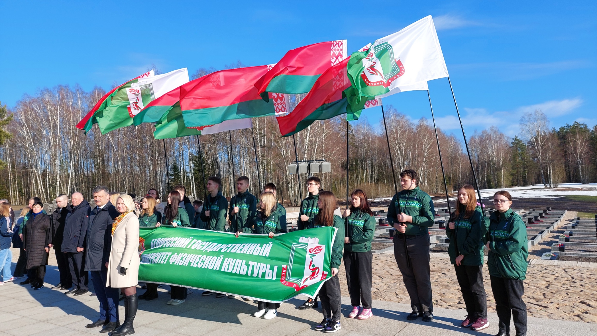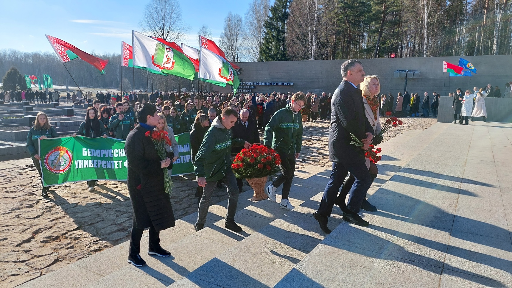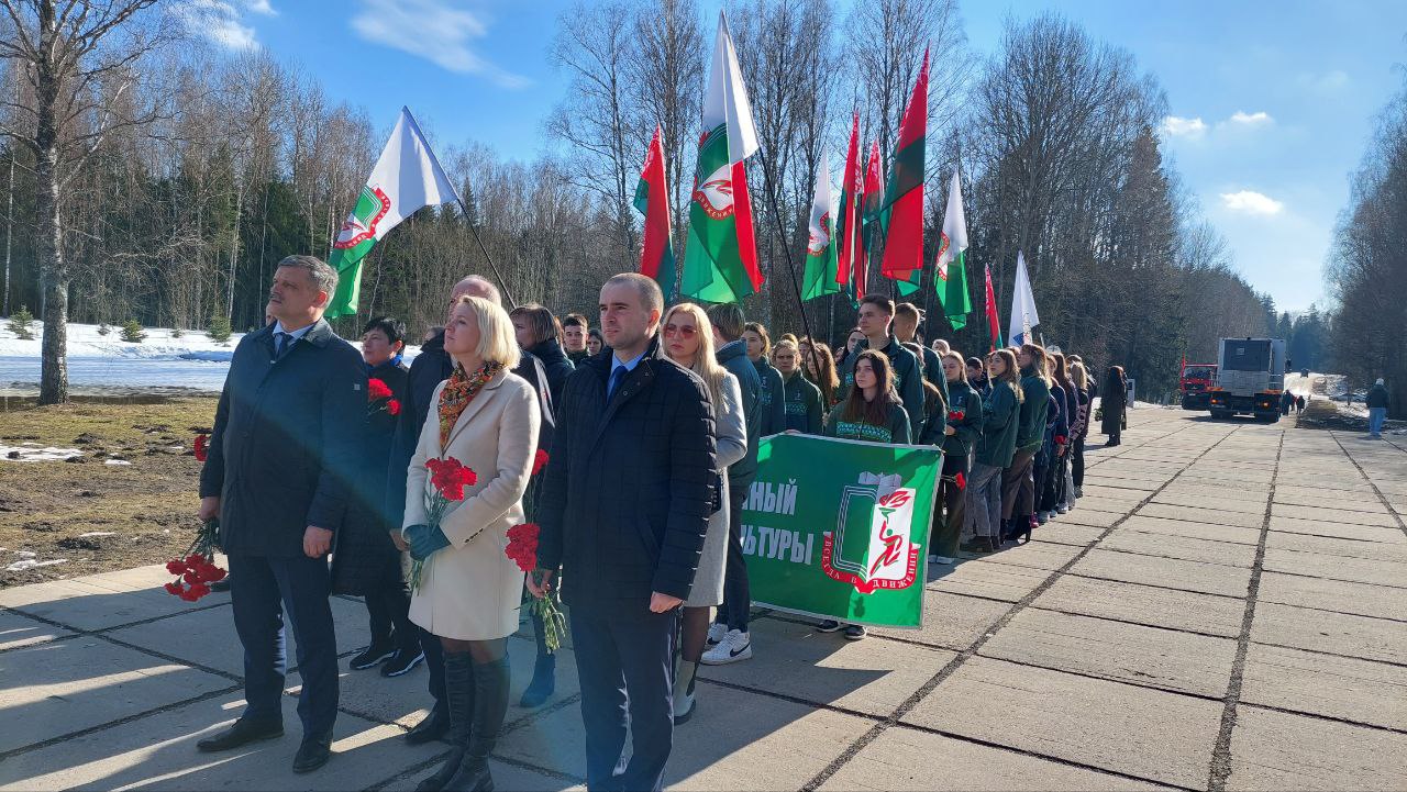 В этот день студенты и сотрудники университета в составе делегации Министерства спорта и туризма Республики Беларусь во главе с Министром Сергеем Михайловичем Ковальчуком почтили память погибших белорусов и возложили цветы к Вечному огню мемориального комплекса «Хатынь».