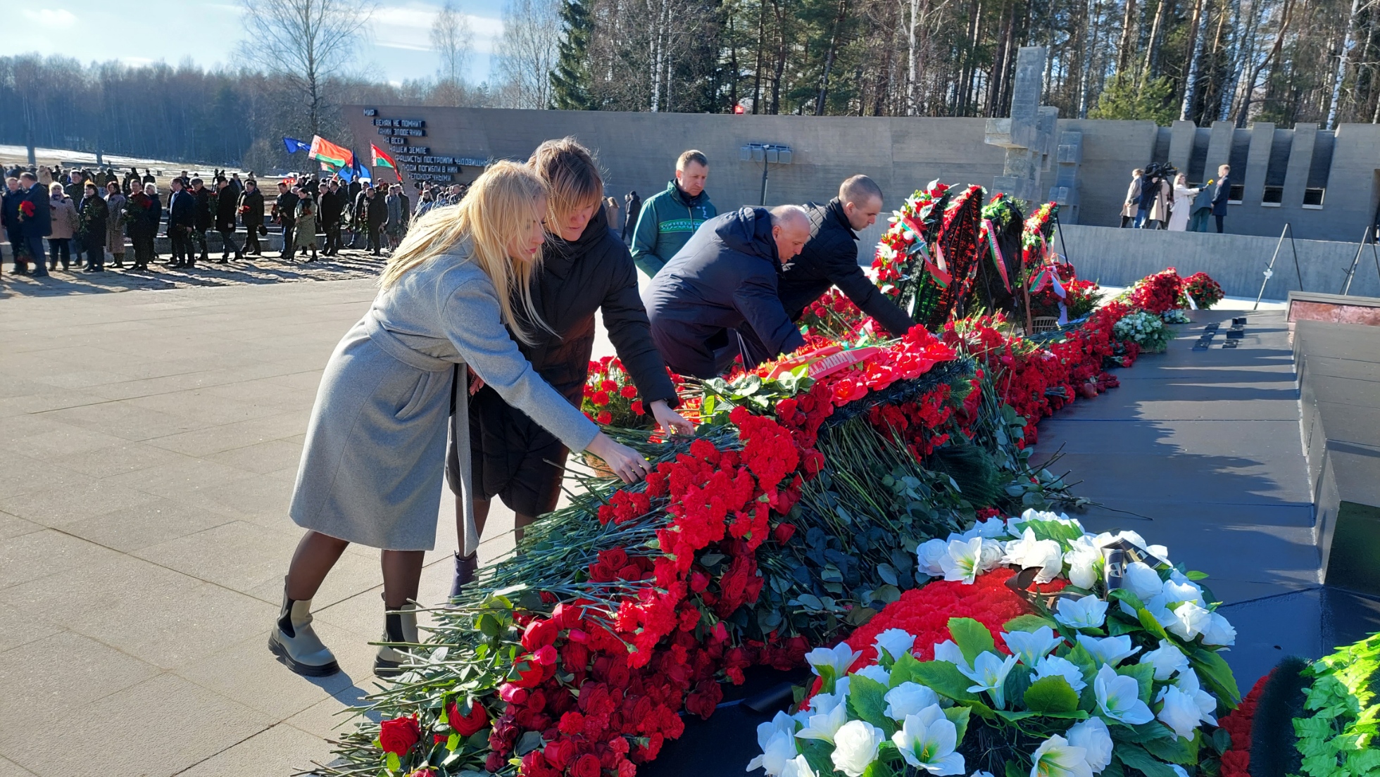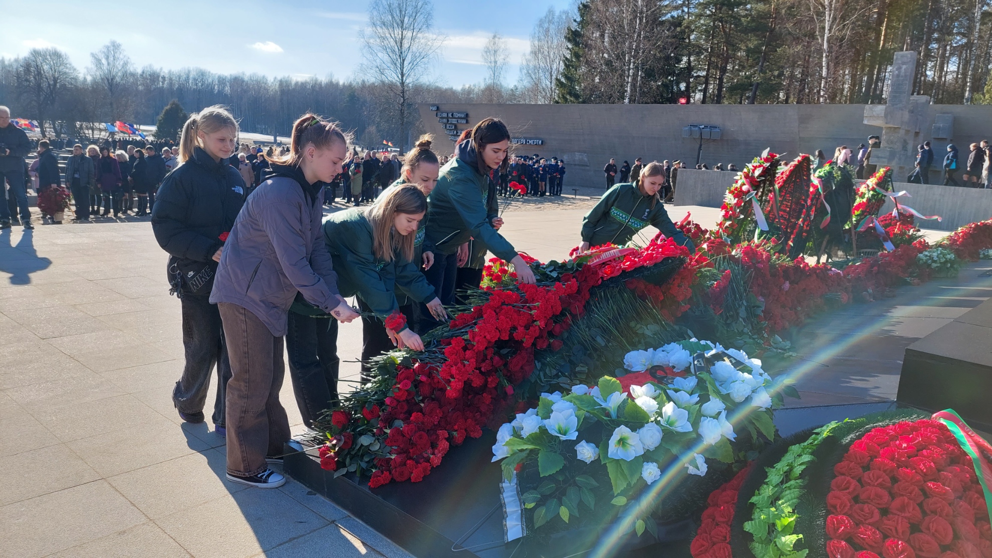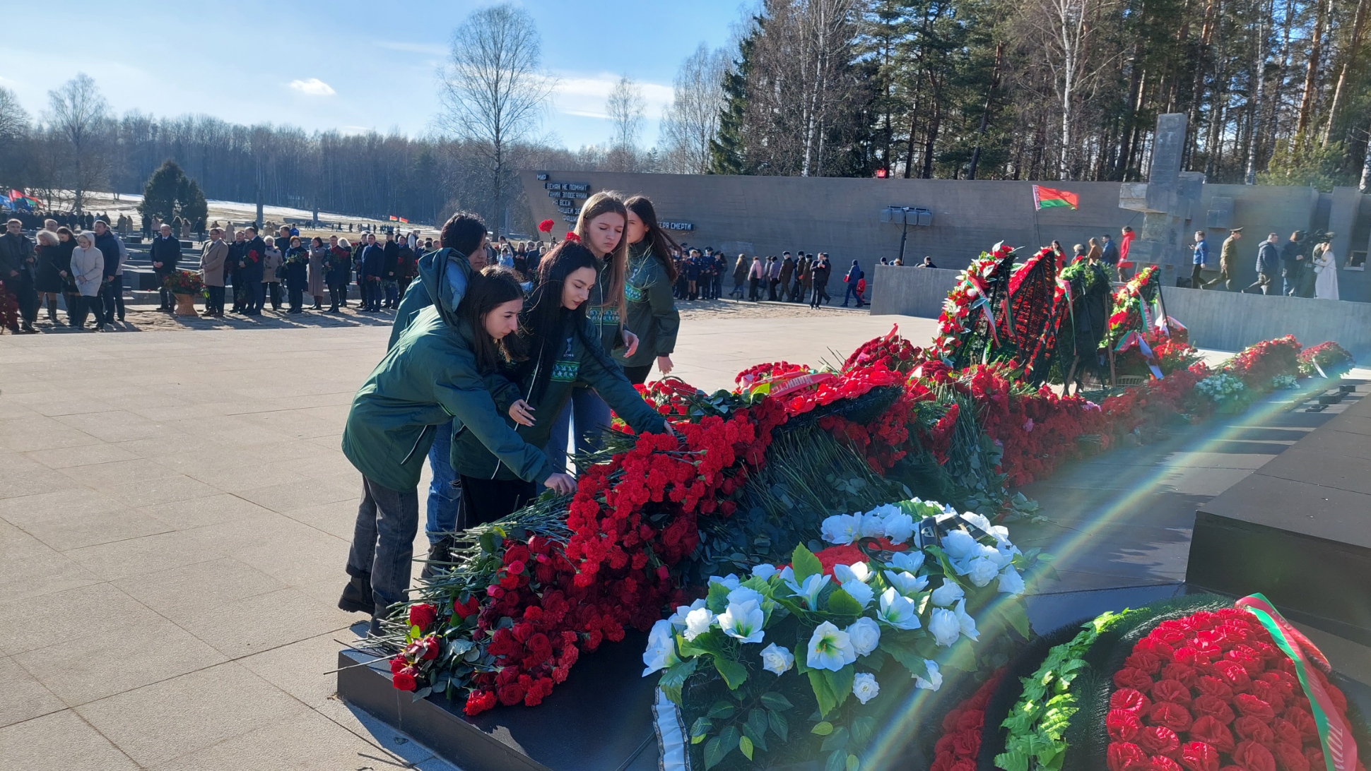 В этот день студенты и сотрудники университета в составе делегации Министерства спорта и туризма Республики Беларусь во главе с Министром Сергеем Михайловичем Ковальчуком почтили память погибших белорусов и возложили цветы к Вечному огню мемориального комплекса «Хатынь».