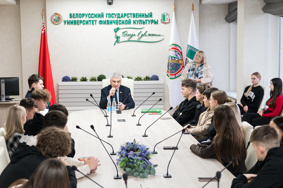 18 декабря на факультете менеджмента спорта, туризма и гостеприимства Института менеджмента спорта и туризма в рамках проекта «Время успешных!» состоялась встреча студентов факультета с Валентином Михайловичем Семеняко, членом Совета Палаты представителей Национального собрания Республики Беларусь, председателем Постоянной комиссии по государственному строительству, местному самоуправлению и регламенту, членом Союза писателей Республики Беларусь.