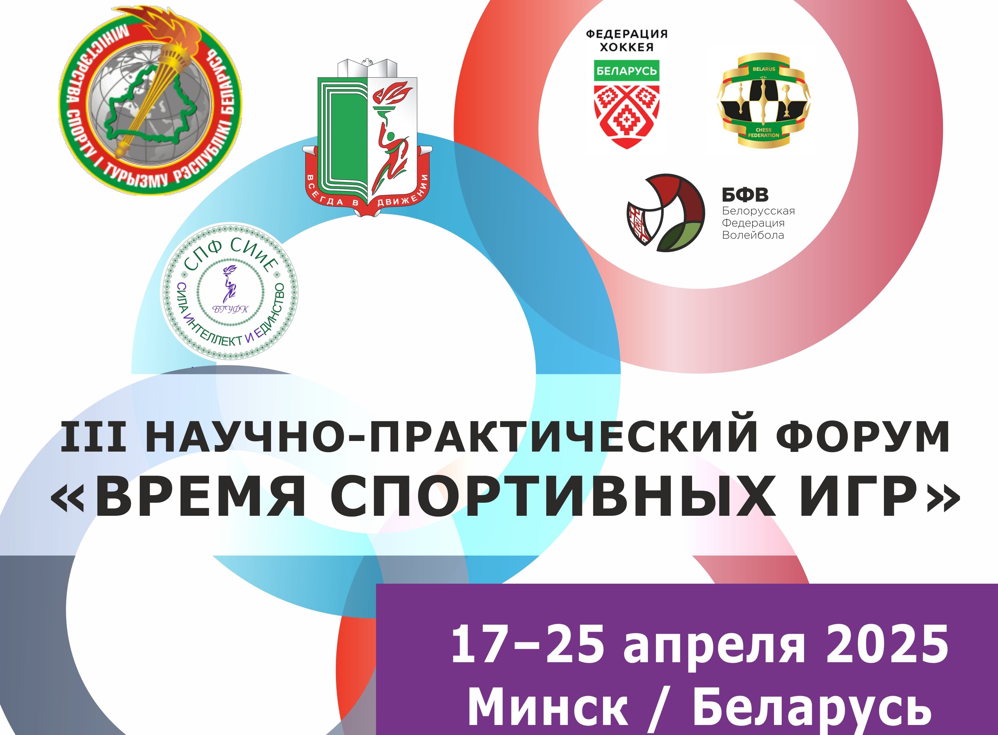 С 17 по 25 апреля 2025 года в Белорусском государственном университете физической культуры (БГУФК) состоялся масштабный III Научно-практический форум «Время спортивных игр». Данное событие объединило ведущих экспертов, тренеров, спортсменов и ученых для обмена опытом, обсуждения актуальных проблем и инновационных методик в игровых видах спорта. Количество участников мероприятий форума составило более 450 человек, из них студентов — более 300.