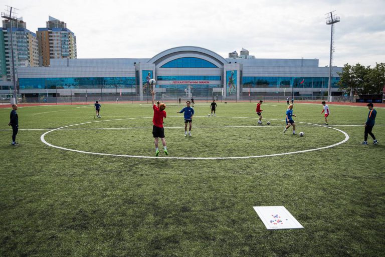 После проведенной разминки проведен мастер-класс по тактике ведения игры, после чего прошла основная часть тренировки: выполнение футбольных упражнений с мячом на технику и координацию.