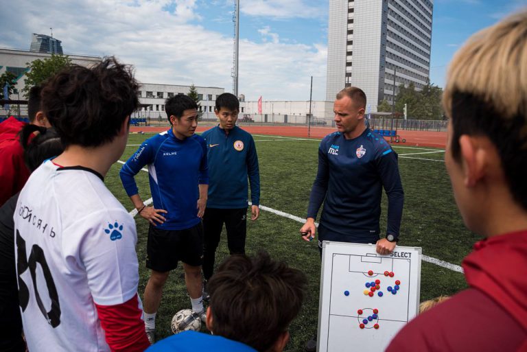 Тренировка состояла из двух частей: в первой Матвей Сергеевич поделился своим профессиональным опытом в футболе и продемонстрировал технико-тактические схемы действий игроков.