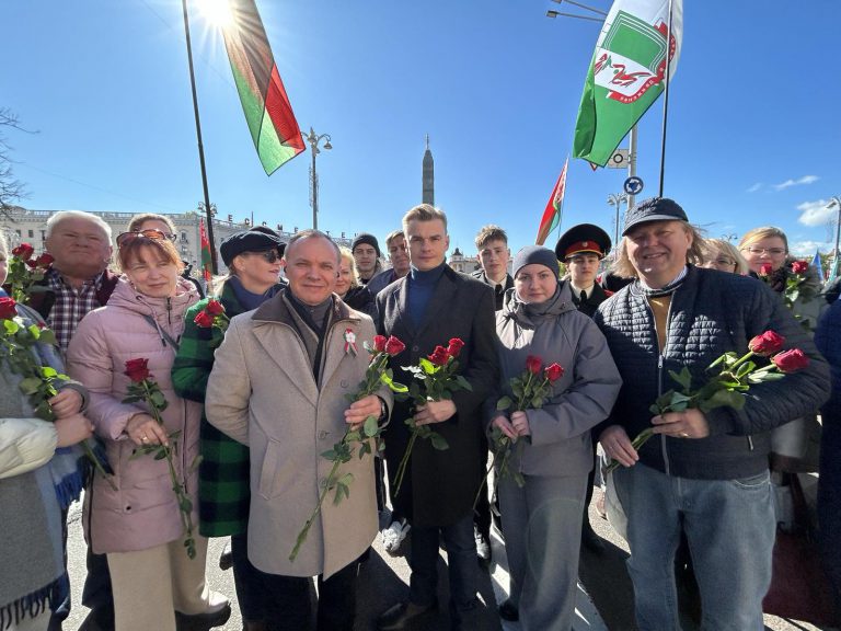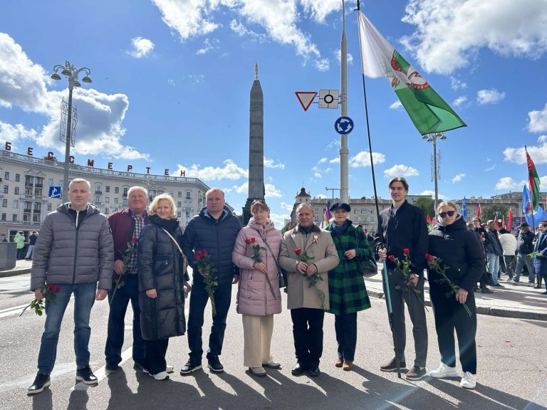 В праздничное утро, 9 мая, трудовой коллектив БГУФК принял участие в акции «Беларусь помнит» на площади Победы. Сотрудники возложили цветы к Вечному огню и почтили память погибших в годы Великой Отечественной войны.