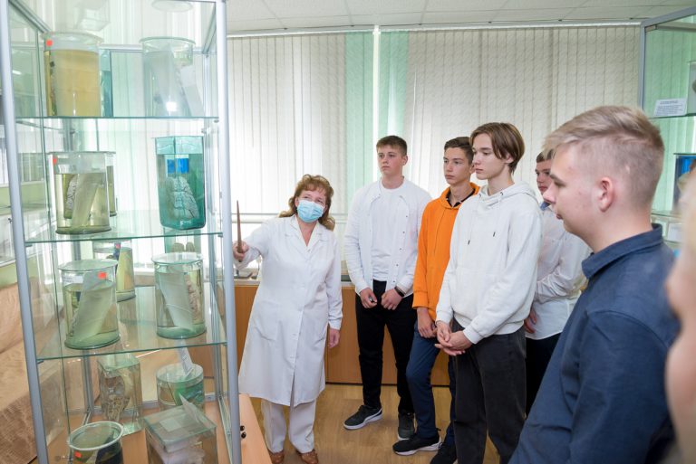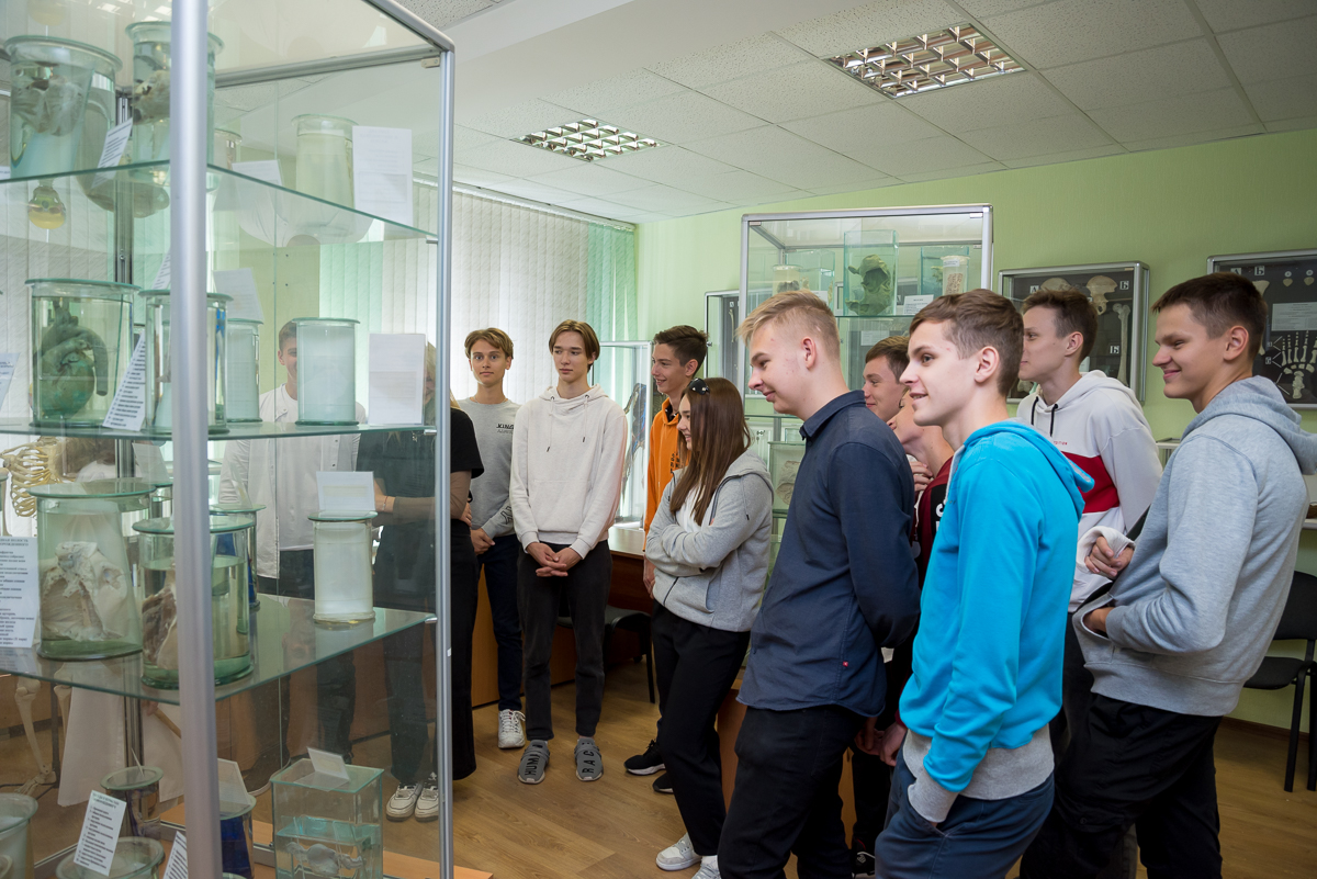 В рамках профориентационной работы 06 и 07 сентября для учащихся профильных 10-11-х классов государственного учреждения образования «Средняя школа № 47 г. Минска» подготовительным отделением совместно с кафедрой анатомии и кафедрой философии и истории проведены ознакомительные экскурсии в музей истории и музей анатомии университета.