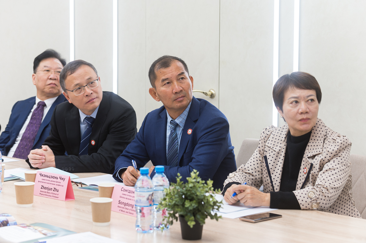 От китайской стороны присутствовали: Кайцзюнь У, проректор Гуанчжоуского университета, профессор; Янган Не, директор офиса по учебным вопросам, профессор; Чжичэн Кэ, заместитель директора офиса по международным связям; Сонгдонг Ли, заместитель декана Школы музыки и танцев; Чжэньцзюнь Чжу, заместитель декана Школы физического воспитания, профессор.