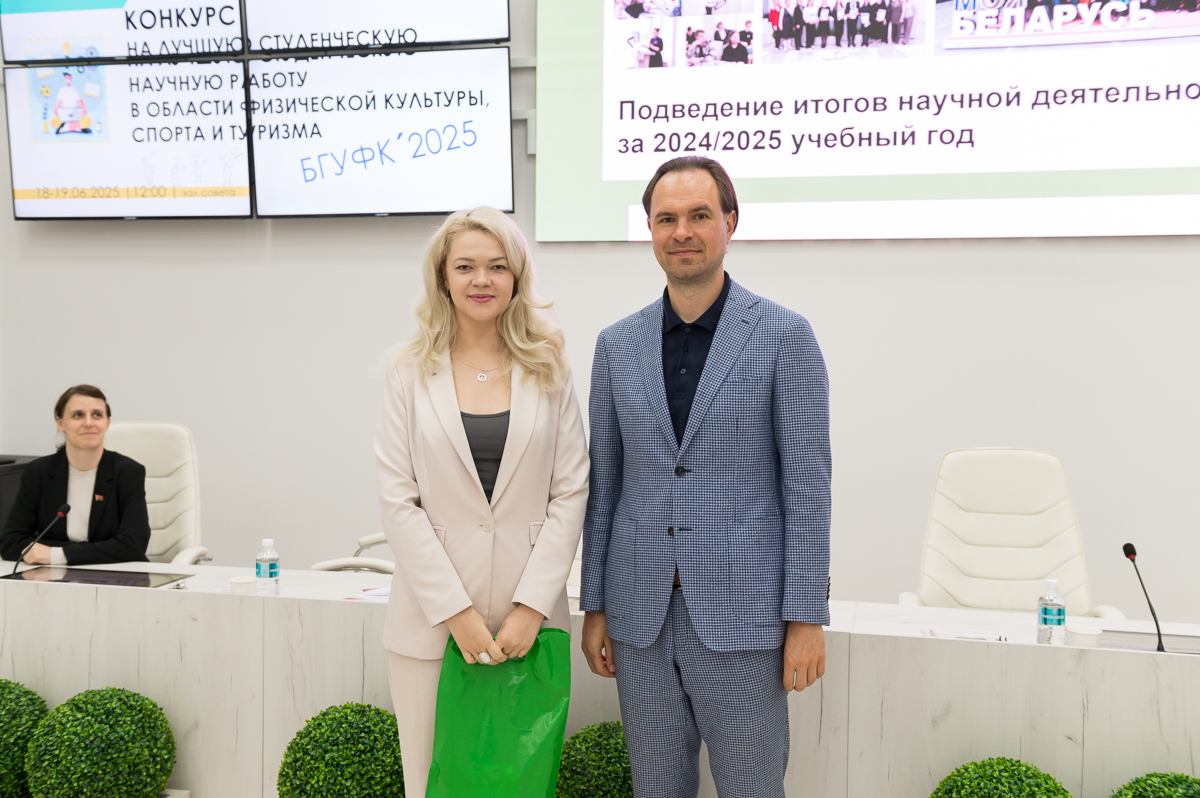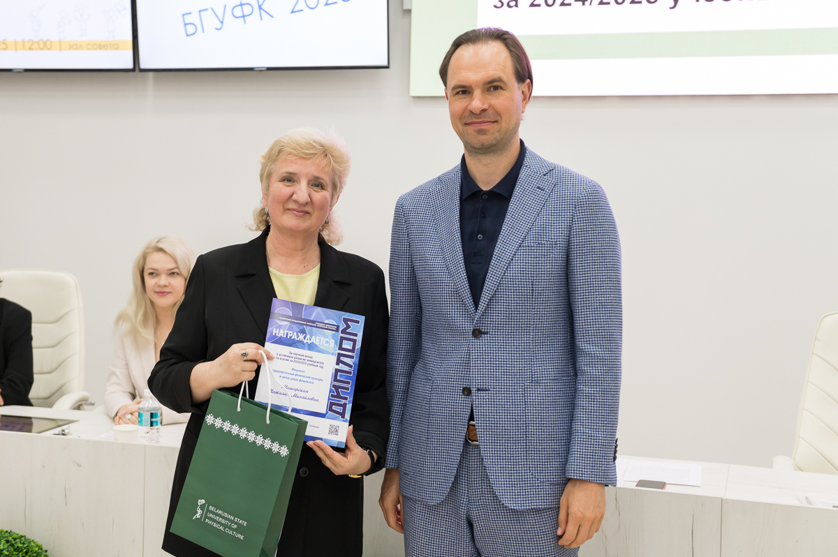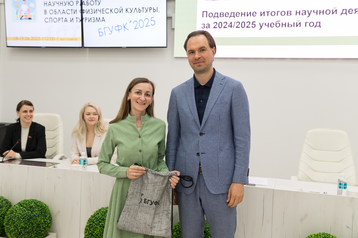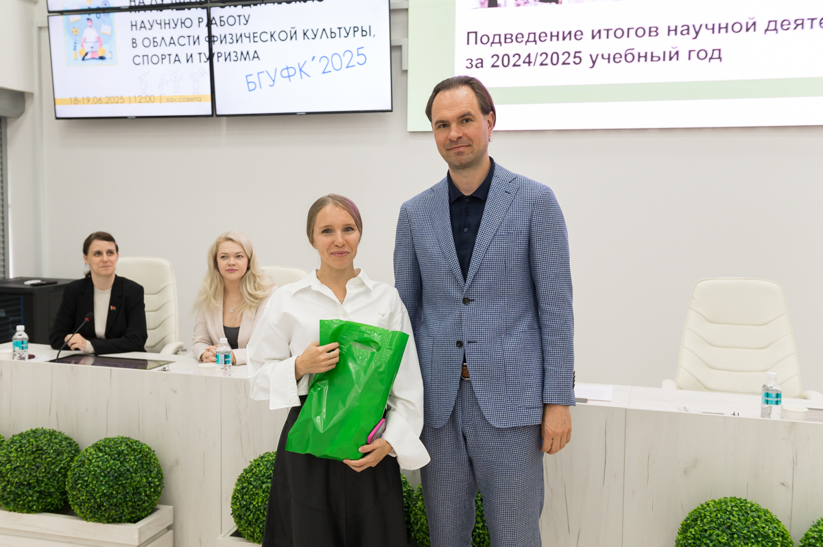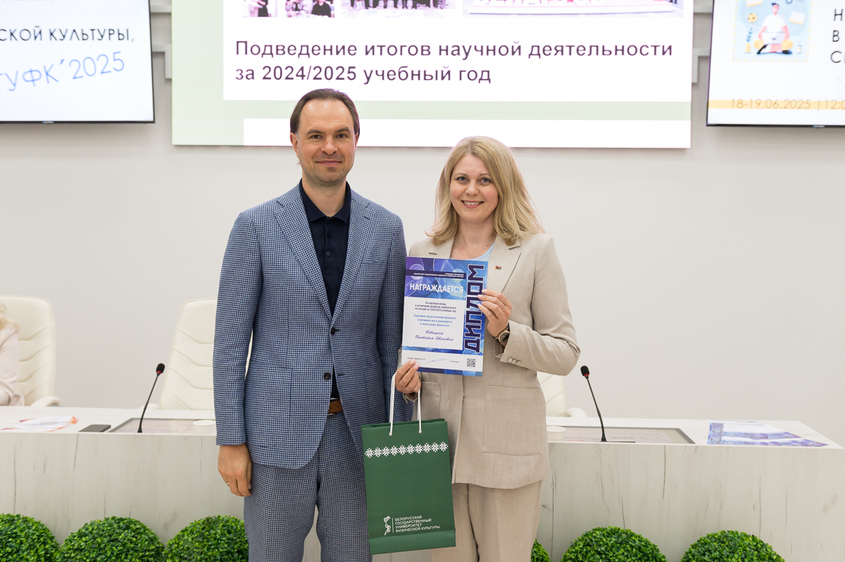19 июня 2025 года в Белорусском государственном университете физической культуры перед финалом конкурса на лучшую студенческую научную работу в области физической культуры, спорта и туризма состоялось подведение итогов научной деятельности за текущий учебный год. Ректор университета Сергей Борисович Репкин в торжественной обстановке вручал дипломы и награды наиболее отличившимся преподавателям и студентам, отметив их значительный вклад в развитие университетской науки.