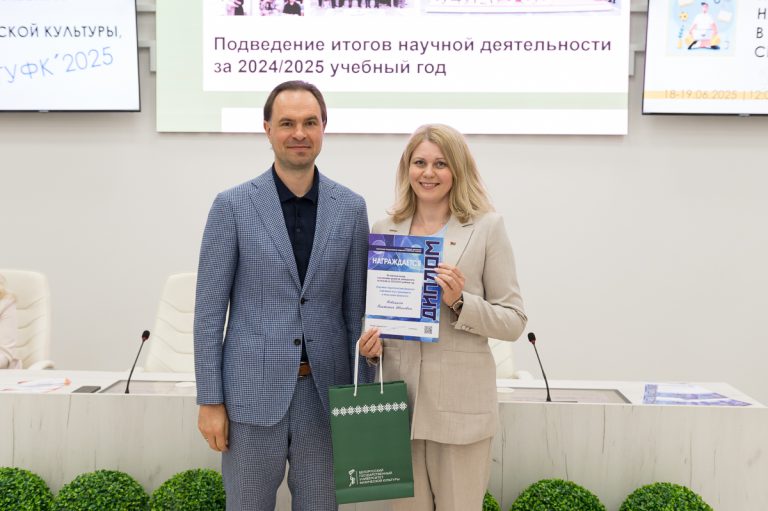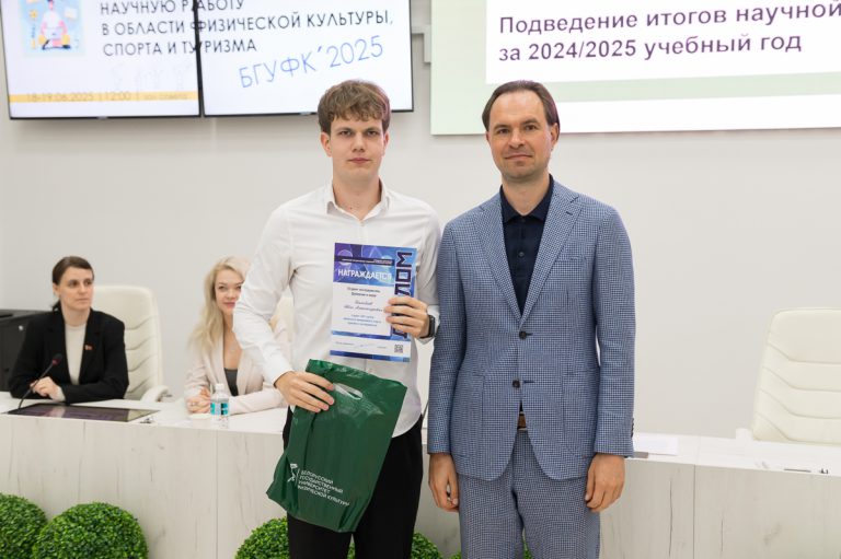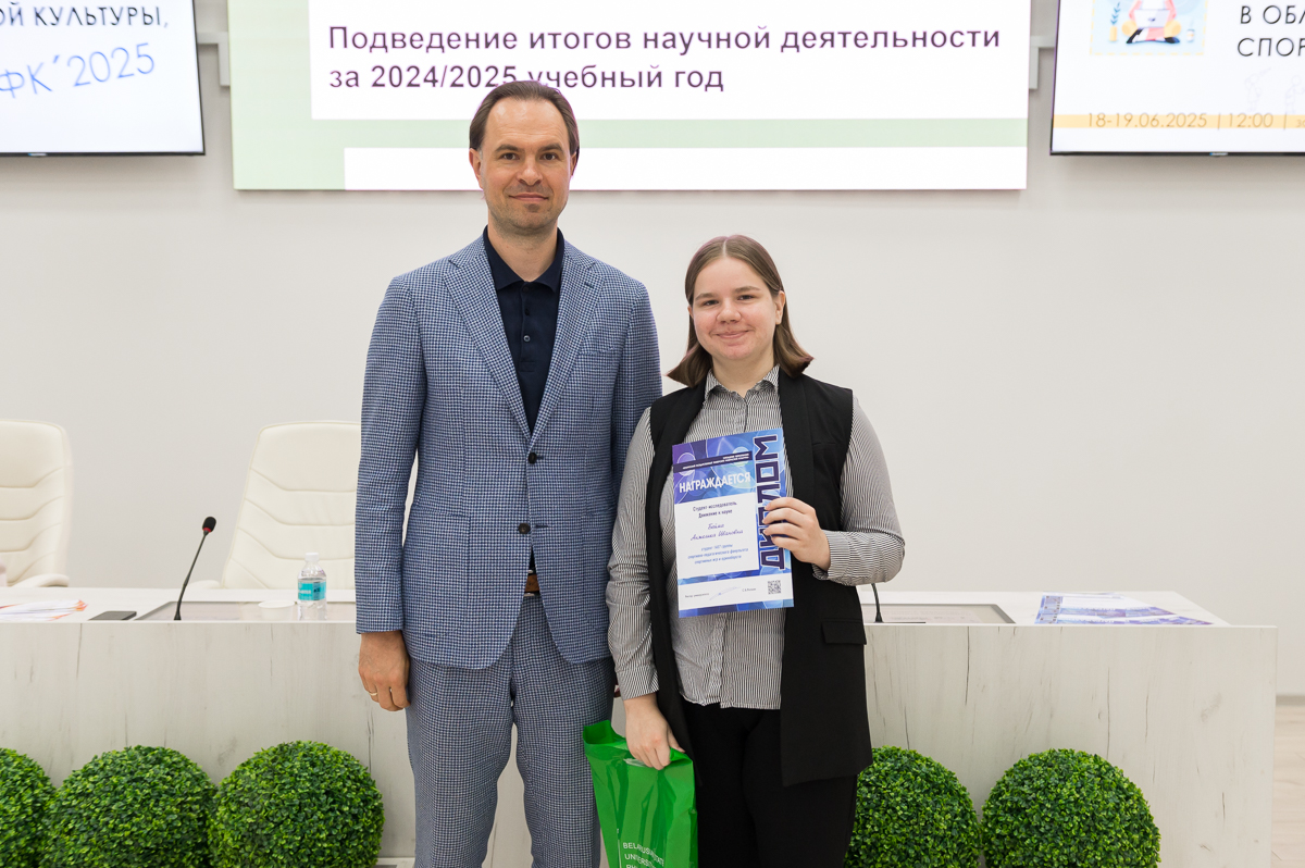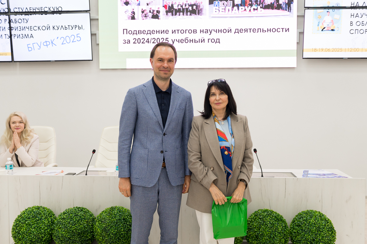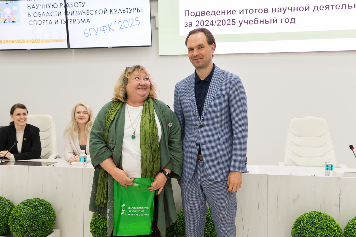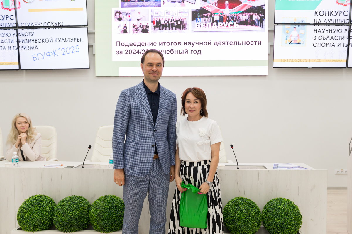 19 июня 2025 года в Белорусском государственном университете физической культуры перед финалом конкурса на лучшую студенческую научную работу в области физической культуры, спорта и туризма состоялось подведение итогов научной деятельности за текущий учебный год. Ректор университета Сергей Борисович Репкин в торжественной обстановке вручал дипломы и награды наиболее отличившимся преподавателям и студентам, отметив их значительный вклад в развитие университетской науки.