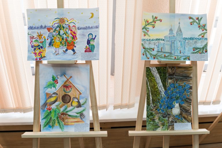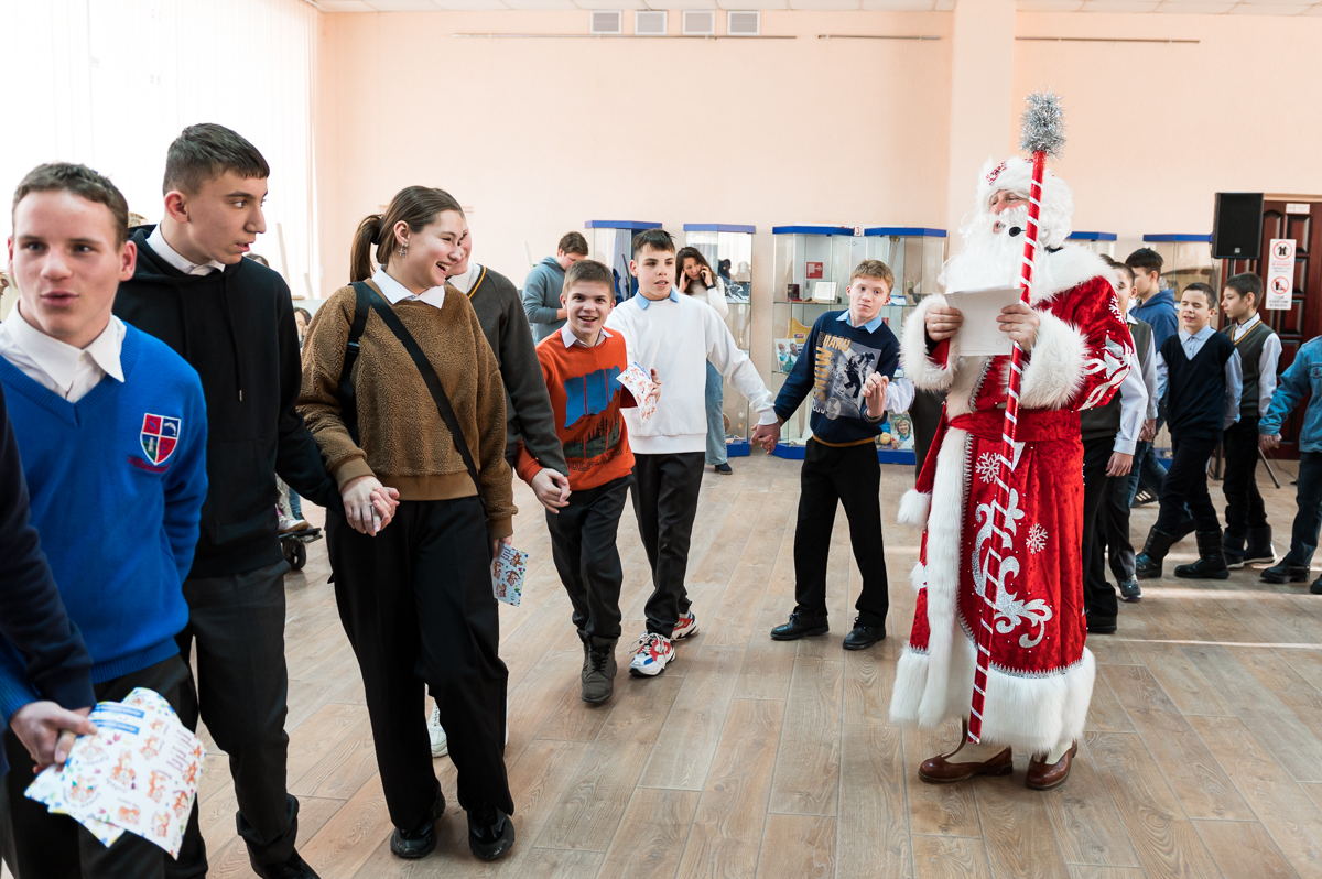 Перед концертом для ребят была организована анимационная площадка с ростовыми куклами, пограничными дрессированными собаками и Дедом Морозом. Также в фойе актового зала университета была организована выставка рисунков детей из школ-интернатов и «Зимняя выставка» картин студентки 216 группы СПФ МВС Глазуновой Дарьи.