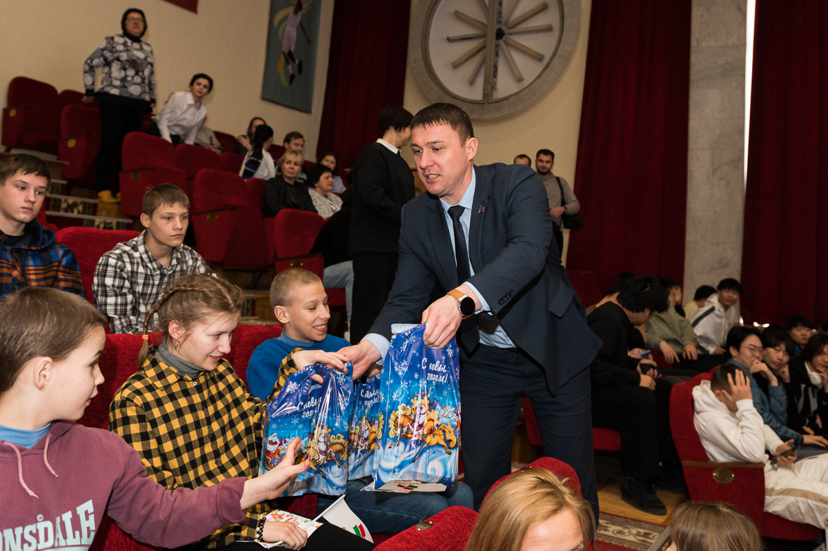 Накануне турнира в актовом зале университета 12 января прошел праздничный концерт для детей, проживающих в домах-интернатах, что позволило создать особую праздничную атмосферу для них. В этом году в университет смогли приехать дети из ГУО «Бегомльская специальная школа-интернат Докшицкого района», ГУО «Каменская специальная школа-интернат», ГУО «Руденская специальная школа-интернат», ГУ «Червеньский дом-интернат для детей инвалидов с особенностями психофизического развития», ГУ «Логойский дом-интернат для престарелых и инвалидов», ОБО «Белорусский детский хоспис».