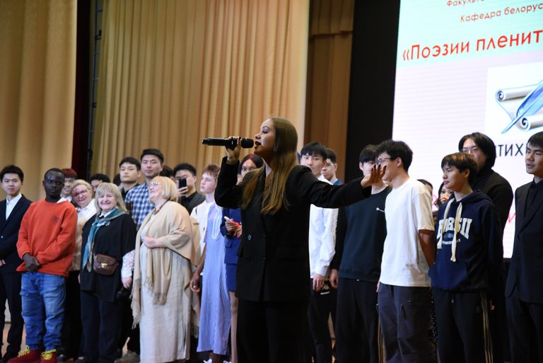Беларусь – спокойная, красивая, гостеприимная страна, обучение в которой выбирают все больше иностранных граждан. Показательно, что, когда при открытии мероприятия студентка 2209 группы Боровик Анастасия запела «Я люблю Беларусь», все конкурсанты поднялись на сцену, чтобы поддержать ее.