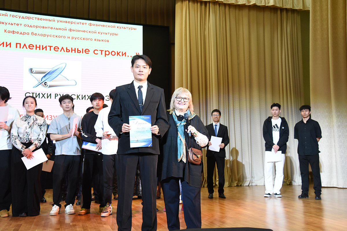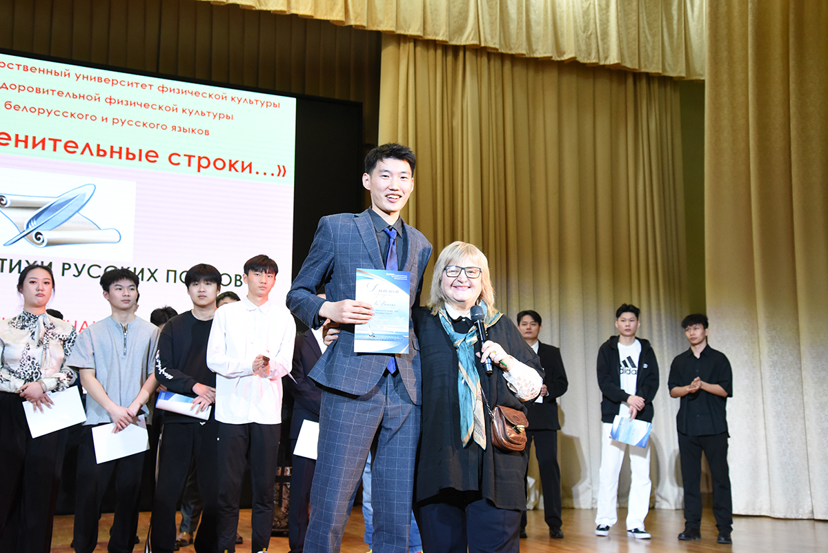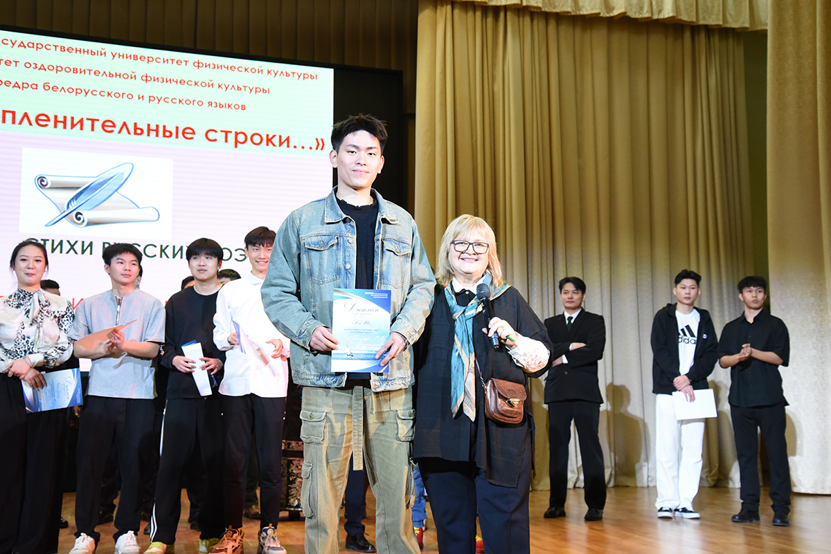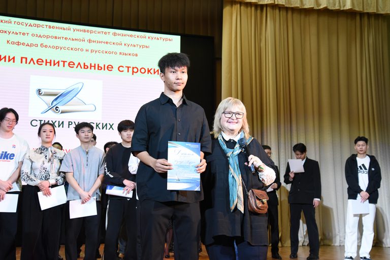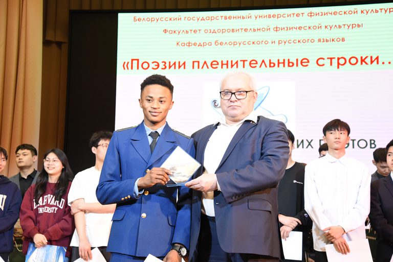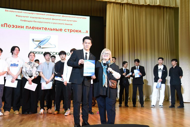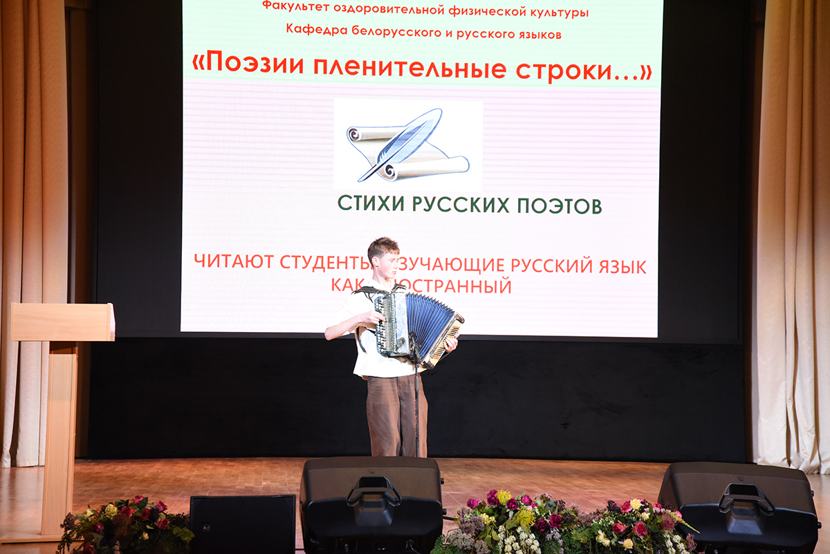 26 марта в актовом зале БГУФК прошел межвузовский конкурс чтецов «Поэзии пленительные строки» для иностранных студентов, изучающих русский язык. Организатором мероприятия выступила кафедра белорусского и русского языков факультета оздоровительной физической культуры.